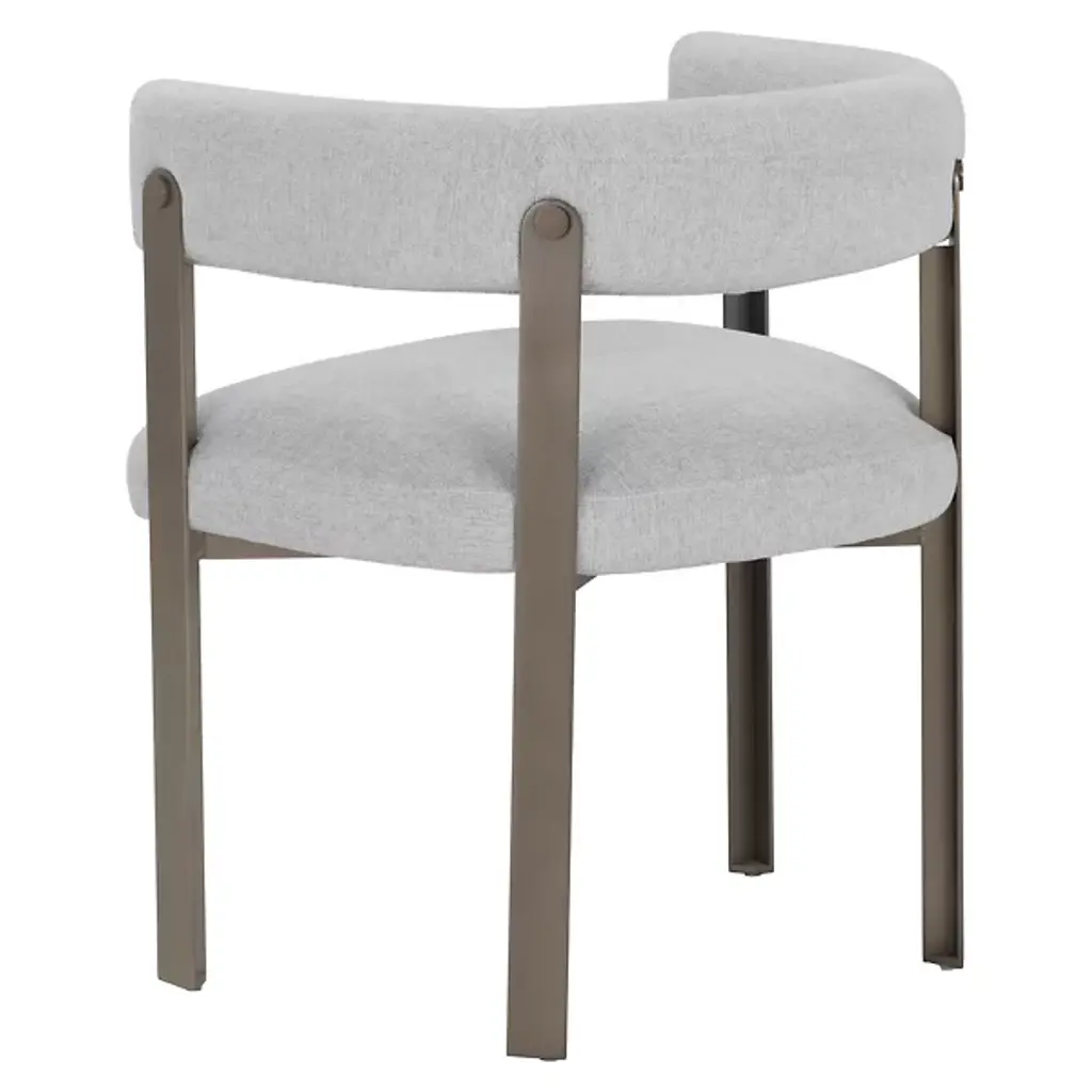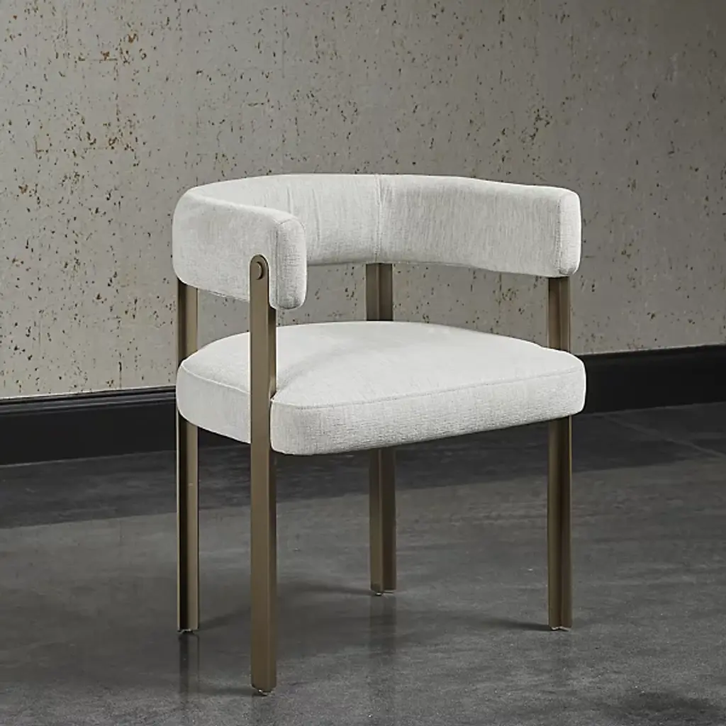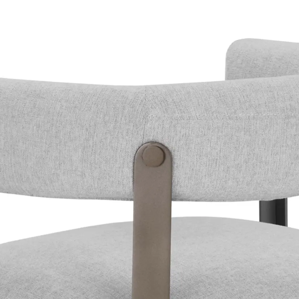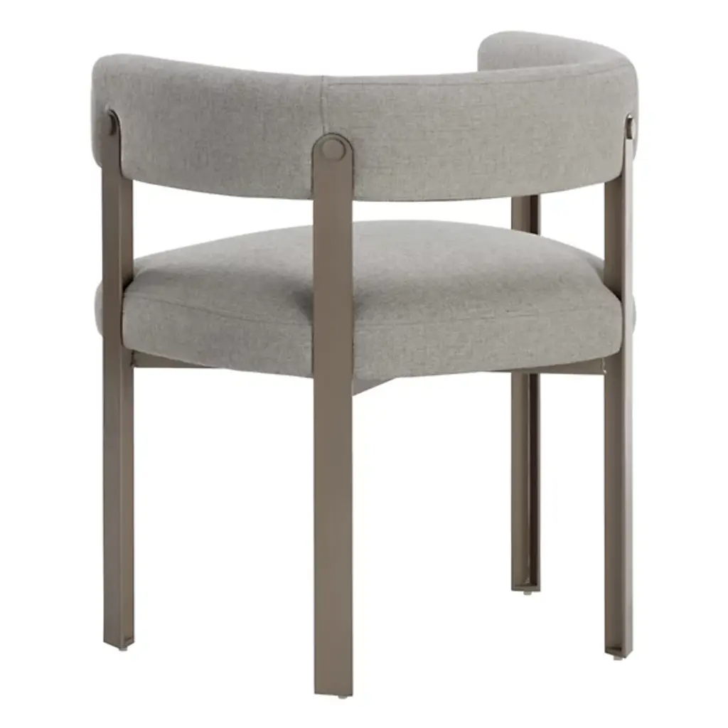 The Mae Dining Armchair by Sunpan epitomizes style and elegance with this stunning dining armchair. Its design showcases a contemporary barrelback seat, upholstered in exquisite Ernst Sandstone fabric, resting atop a powder-coated steel base with a lustrous gold finish. This chair effortlessly combines modern aesthetics with luxurious comfort, making it the perfect addition to your dining space. Elevate your dining experience with this tastefully designed and beautifully crafted dining armchair.