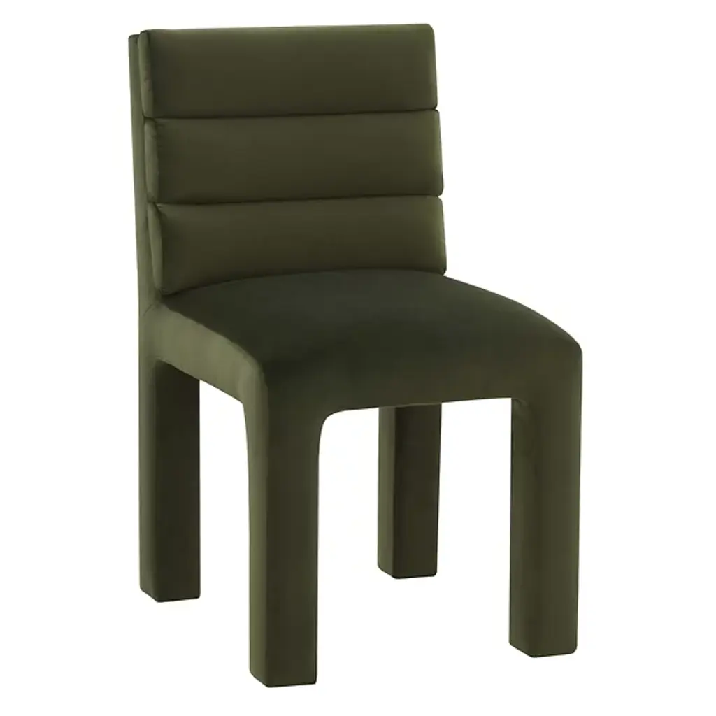 Elevate your mealtime with the sophisticated charm and comfort of our Maelis dining chair. Our contemporary dining chair is fully upholstered for a sleek and inviting look. Its plush contours are highlighted with a stunning channeling detail upon the back. With a generously cushioned back and padded seat, our dining chair offers a comfortable stay long after the meals are over. It is designed to lend sophisticated and soft visual appeal to your dining area.