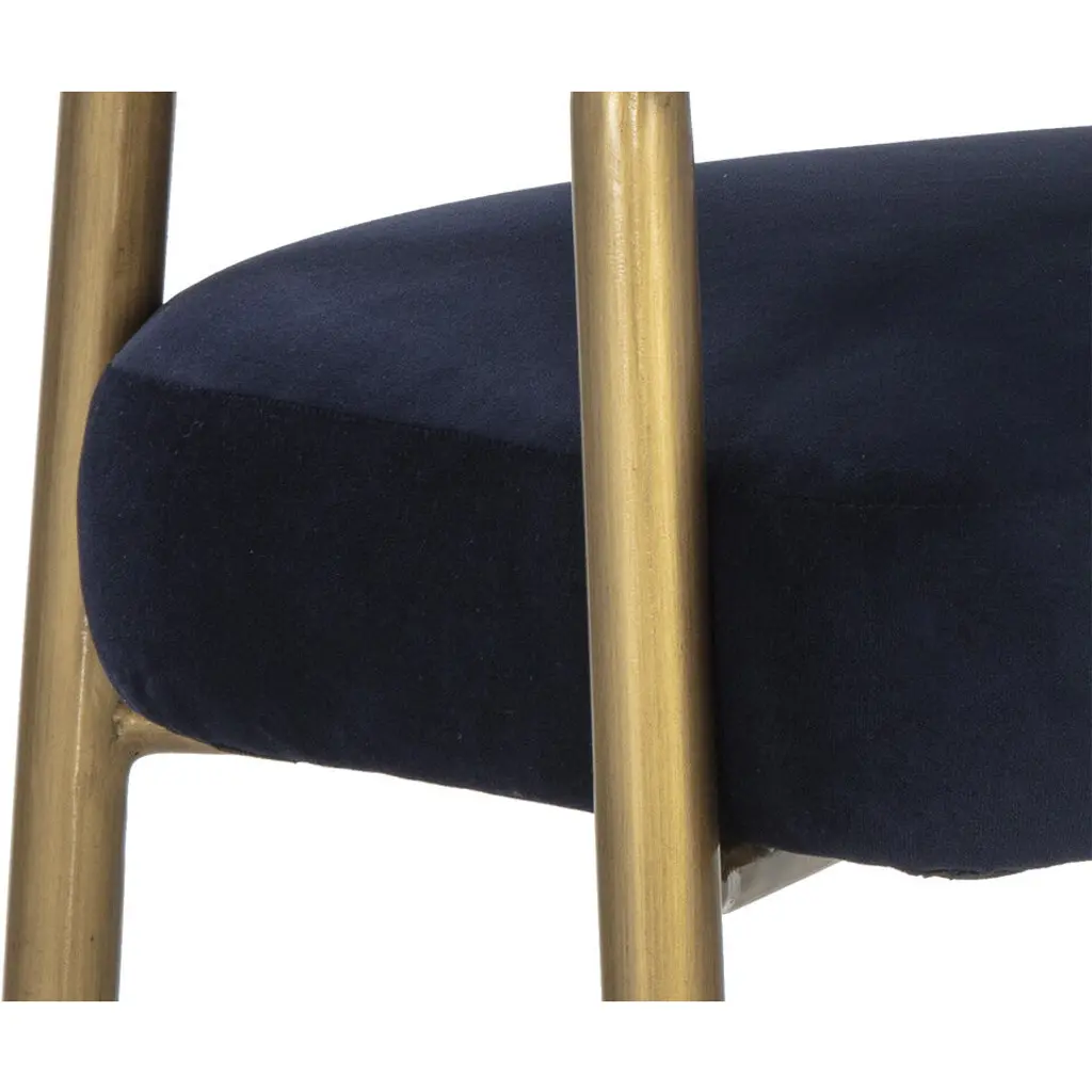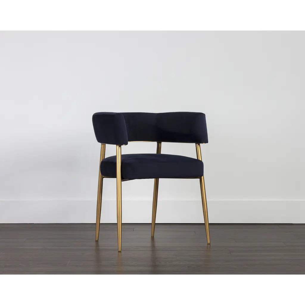 Turn heads with this contemporary dining armchair that exudes extravagance. Features a curved frame and upholstered in our belfast heather grey fabric and completed with antique brass legs.