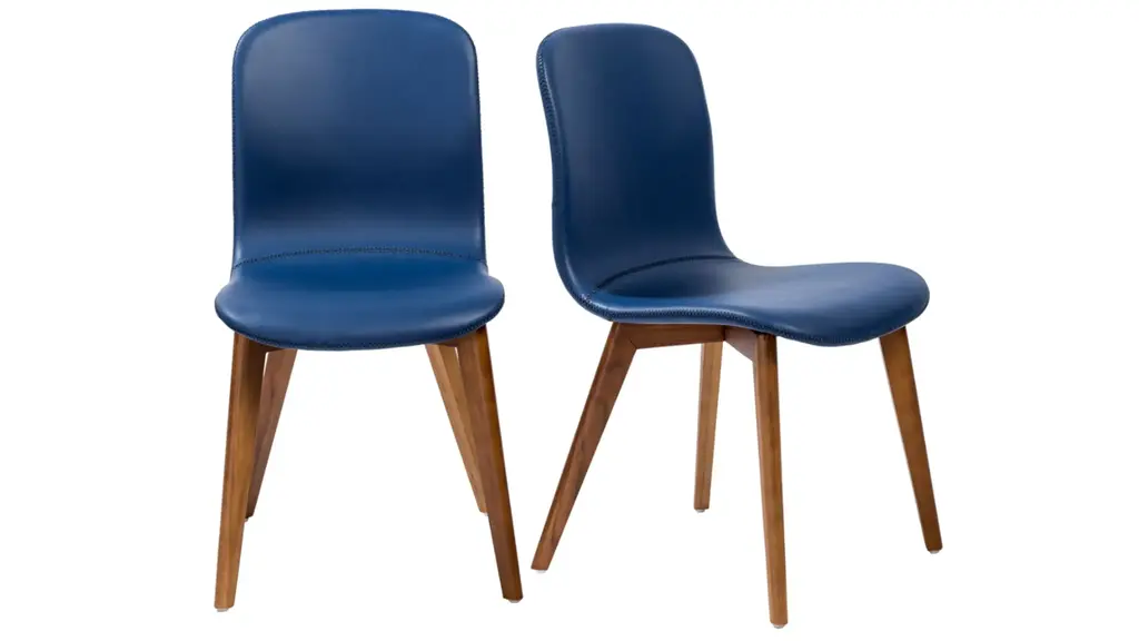 The Mai Side Chair -Set of 2 combines comfort with style and attention to detail. Tapered solid wood legs support a durable leatherette seat with handsome cross stitched seams. Perfect for the dining room table, or living room.