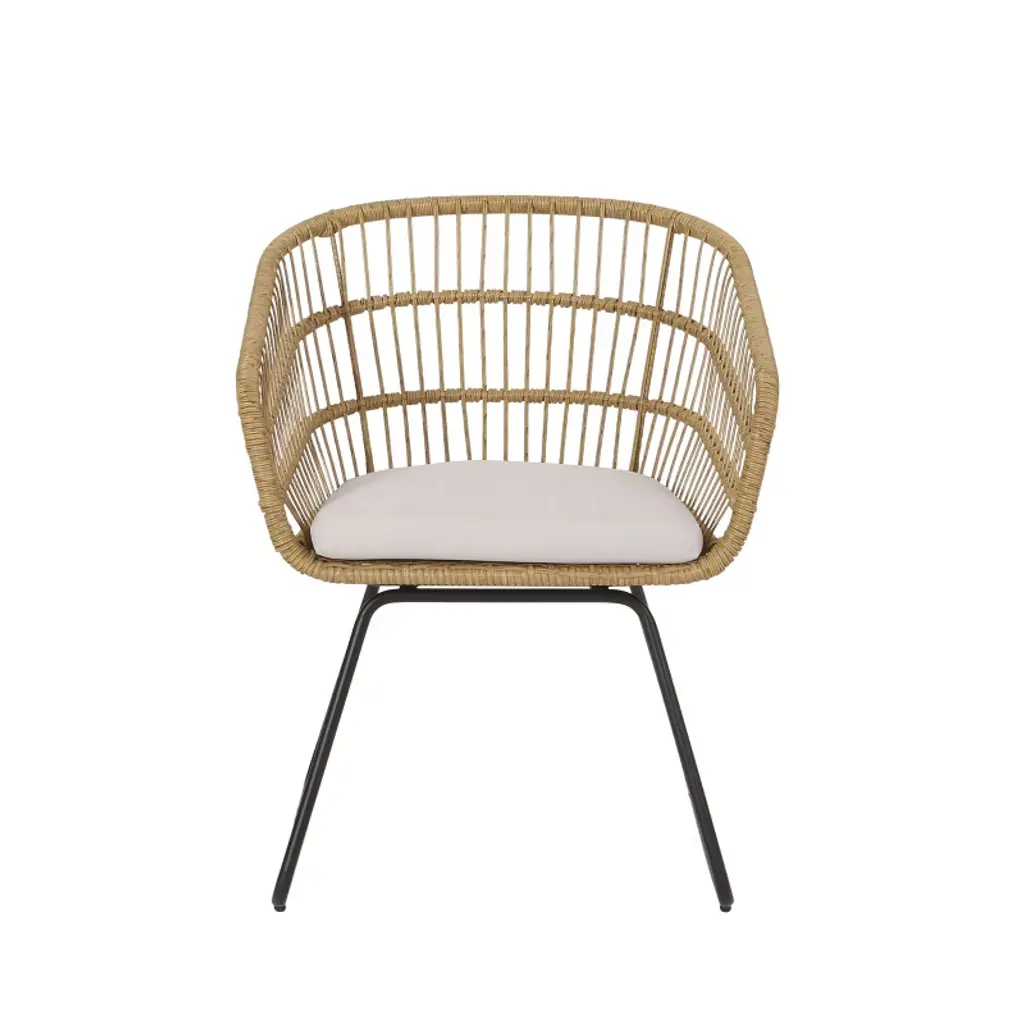 Maliang 2Pcs Pe Rattan Chair With 2 Cushions, Light Brown