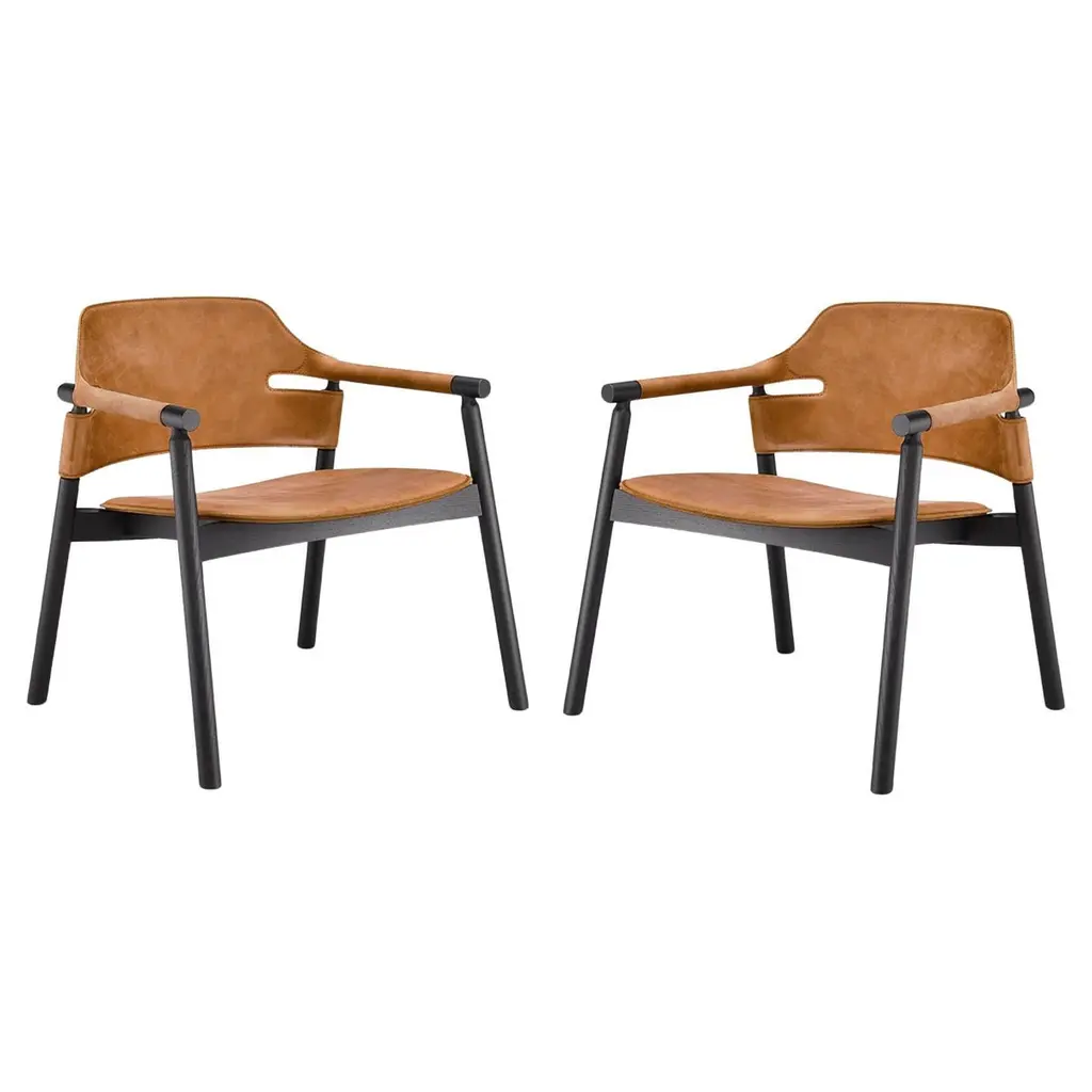 Malin Cognac Vegan Faux Leather Dining Chair With Matte Black Finish Set Of 2