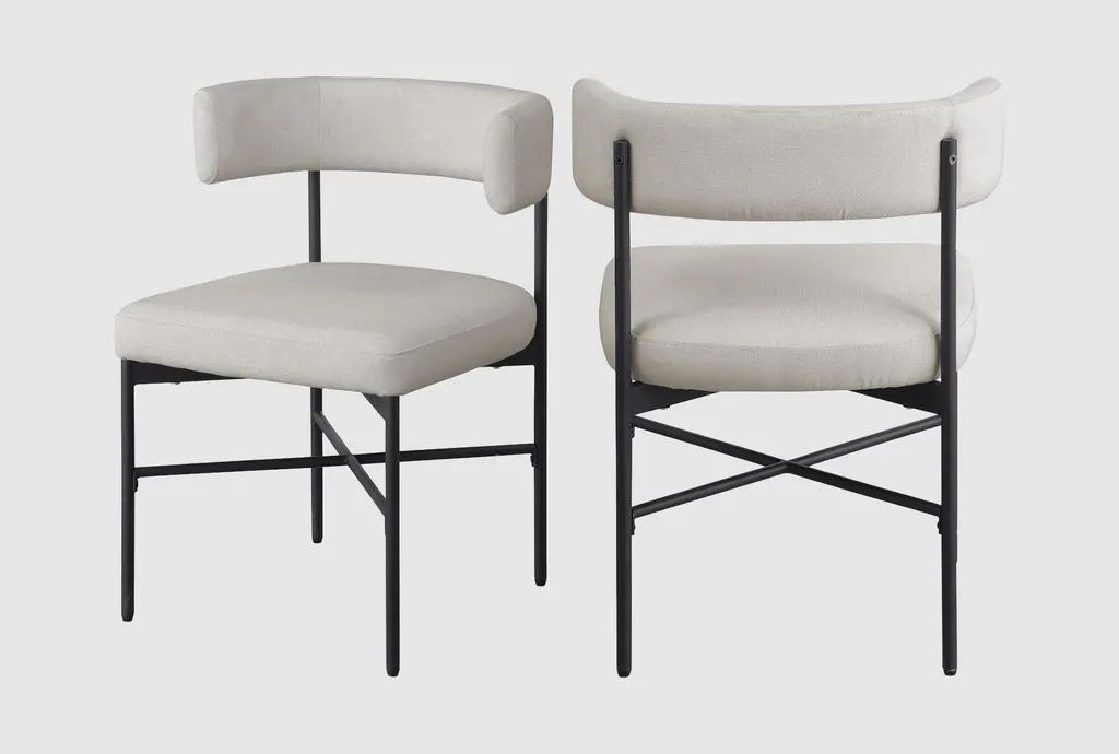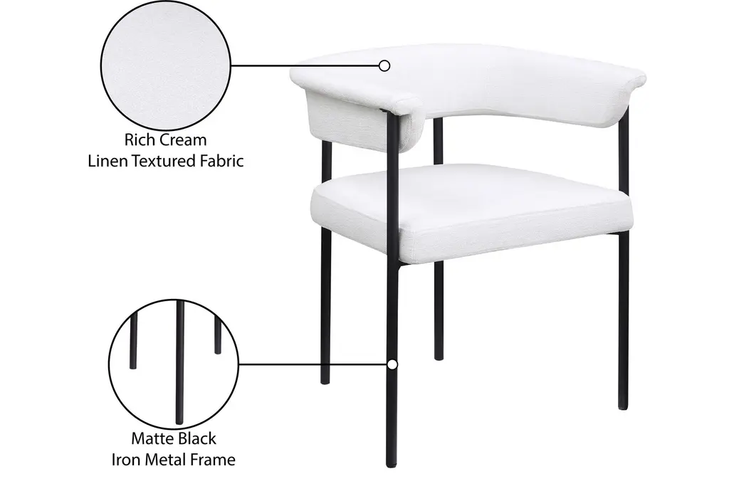 Malin Cream Linen Textured Upholstered Dining Chair With Matte Black Finish Set Of 2