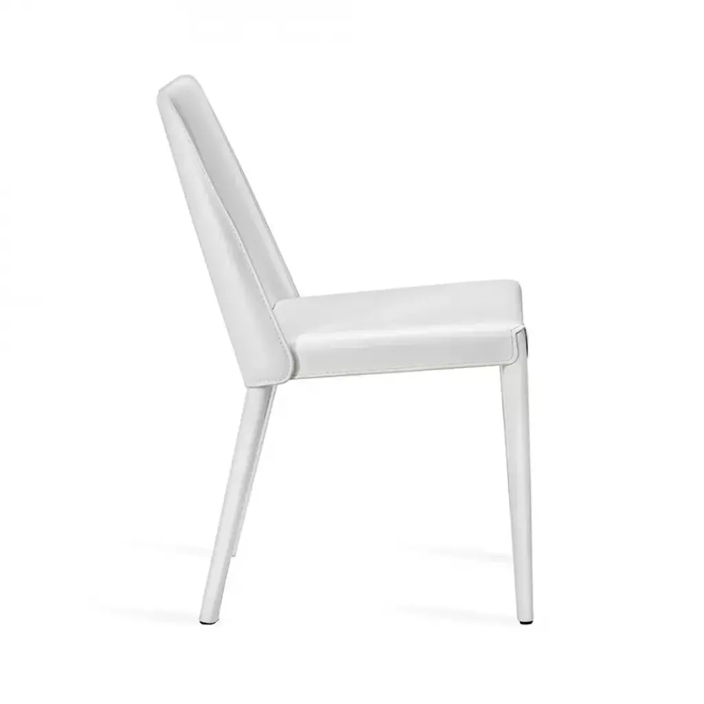 The Malin Dining Chair delivers thanks to winter white leather and sleek lines.