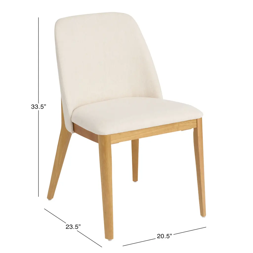 Featuring an exposed-wood frame with flared back legs, our Maliyah upholstered side chair is a fresh take on the iconic Parsons-style silhouette. Its plush seat and gently curved back are tailored in an array of fabrics and colors to complement your chosen frame color. Available in Scandi-inspired natural oak and mid-century dark walnut, either wood finish will look right at home in a traditional, modern or farmhouse dining room.