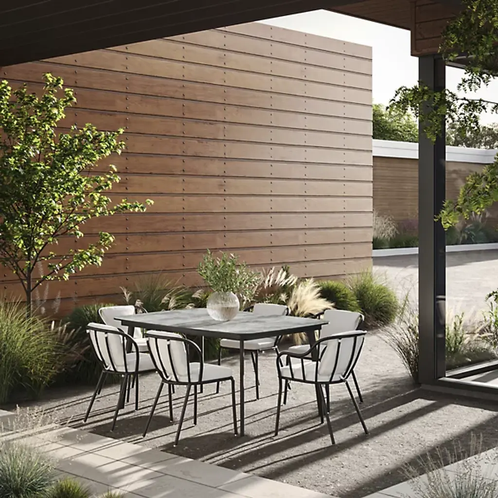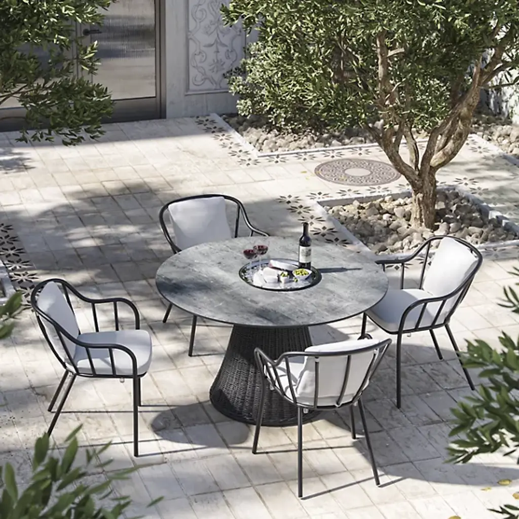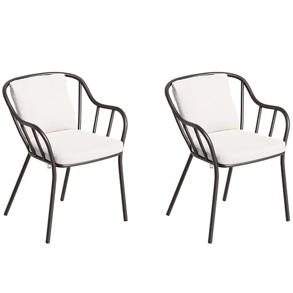Neoclassical elegance for modern exteriors. The Malti Outdoor Armchair - Set of 2 by Oxford Garden showcases refined, laidback style in its gracious curves and clean lines. The frame creates a comfortable embrace with welded, heavy-gauge aluminum bars. It is lightweight but also sturdy, with a powder coated finish increasing its resistance to the elements. Made of soft Sunbrella linen fabric, the seat and back cushions are also weather-resistant and comfortable for long meals around your outdoor dining table.