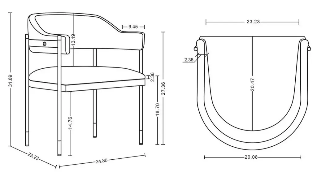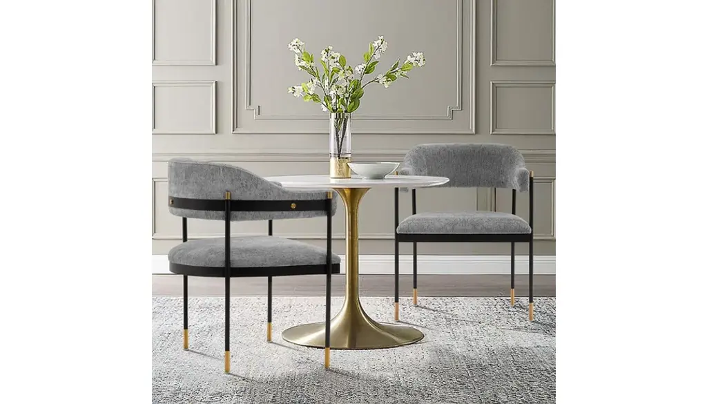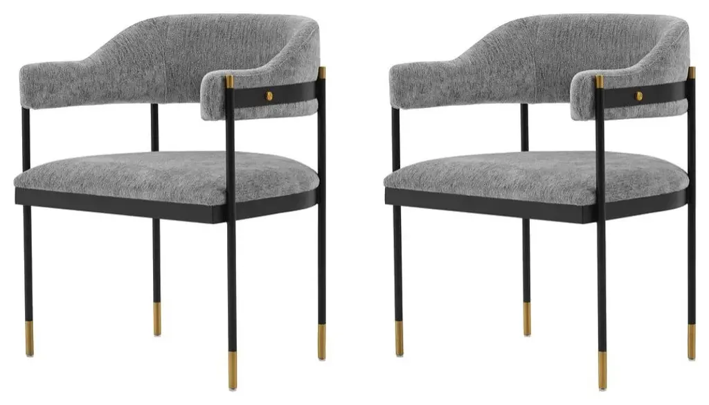 Introducing our exquisite Modern Lia Dining Chair, a perfect blend of form and function.This chair offers both comfort and style. Crafted from high-quality metal with brushed gold accents, it's not just a seat; it's a statement of fashion and durability. Indulge in the lap of luxury with its sumptuous Chenille upholstery, paired with high-density foam padding for unmatched comfort. The stunning metal frame, adorned with gold accents and a floating back design, adds a touch of sophistication to any space. Designed for versatility, it's suitable for both dining rooms and as a task chair. Plus, it's commercial-grade tested, boasting a weight capacity of up to 330 lbs. Best of all, it's delivered fully assembled, ensuring a hassle-free addition to your space. Elevate your surroundings with our Modern Lia Dining Chair today!Modern Dining Chair for Dining Room and Task Chair Usage.Dining Armchair Dimensions Measure: 24.8 in. Length, 31.89 in. Height, 23.23 in. Depth.Frame Made of High Quality Metal with Brushed Gold Tips for Fashion and Durability.Upholstered in Luxurious Chenille with High Density Foam Filled Padding.Stunning Metal Frame with Gold Accents and Floating Back Design.Inner Seat Depth: 20.47 in. Seat Height: 18.7 in. Inner Seat Width: 23.23 in.Commercial Grade Tested with Weight Capacity of 330 Lbs.Delivered to you Fully Assembled! No Assembly Required!