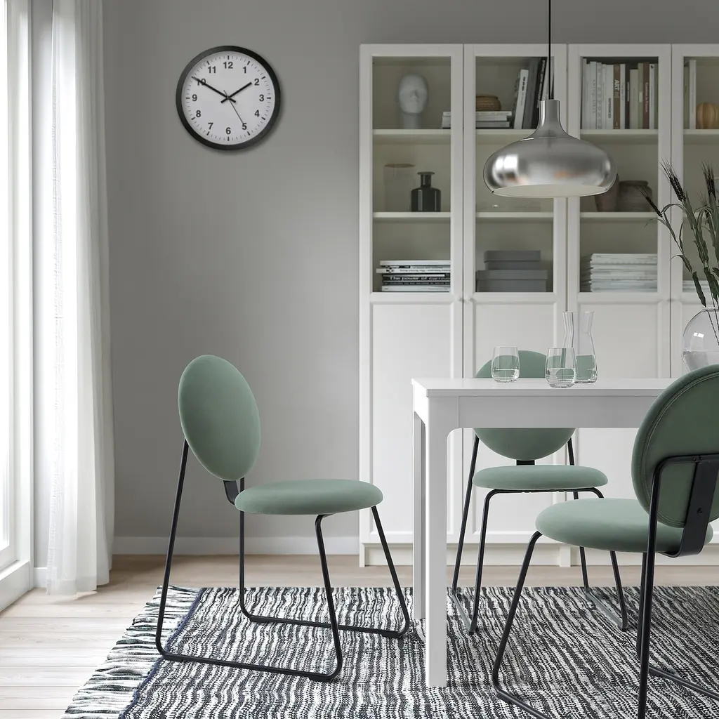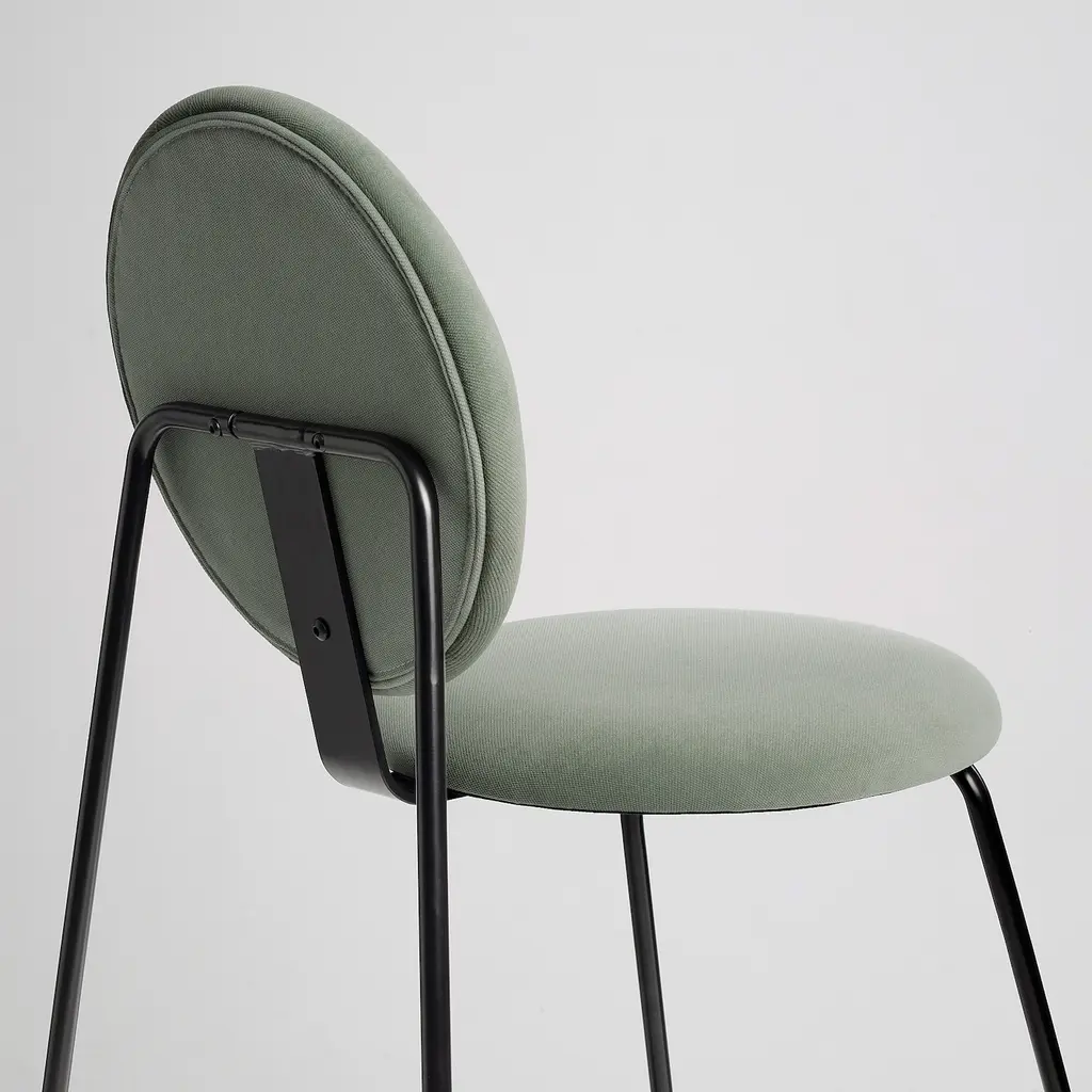 MÅNHULT Chair - black/Hakebo gray-green. Dine in style and comfort. This upholstered chair is perfect for long meals, spending precious moments with family and friends or for indulging in some relaxing me-time. The chair stands firmly in place thanks to the metal underframe.