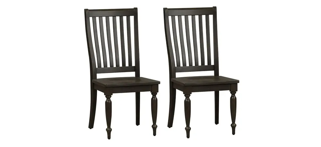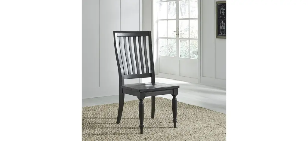Sit in comfort and style with the Manitoba Side Chair-Set of 2. Crafted of rubberwood solids, this piece features a chalkboard finish, shaped wooden slat back, nylon chair glides to protect your flooring, saddle shaped wooden seat for added comfort and is anchored by round turned front legs and tapered back legs. This chair is sure to be a great addition to any home. This piece effortlessly creates a casual look with a classic feel.