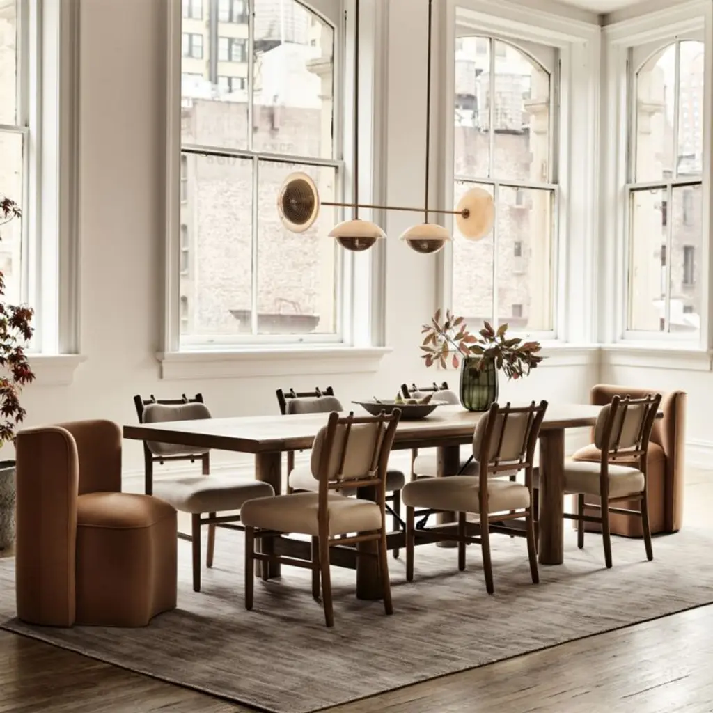 Fully upholstered by hand, Mansfield brings modern curves, expert craftsmanship and armchair comfort to the dining room. The back wraps around the back to give a cozy hug, its curve mimicked in the front of the seat for eye-catching symmetry. The amply cushioned seat rounds to a generous crown, making the sitting experience especially comfortable and well-supported.