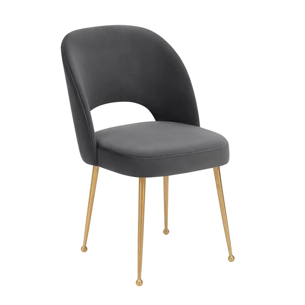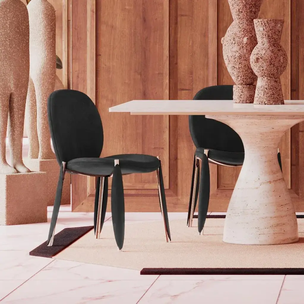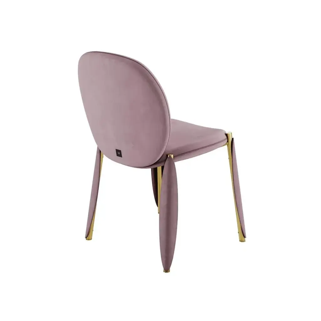 Mantis Chair is a luxurious dining chair expressed by a combination of unique materials. A modern dining chair is a perfect option for a modern or classic dining room design. MATERIALS: Upholstered in Velvet; Structure in Gold Polished Stainless Steel.