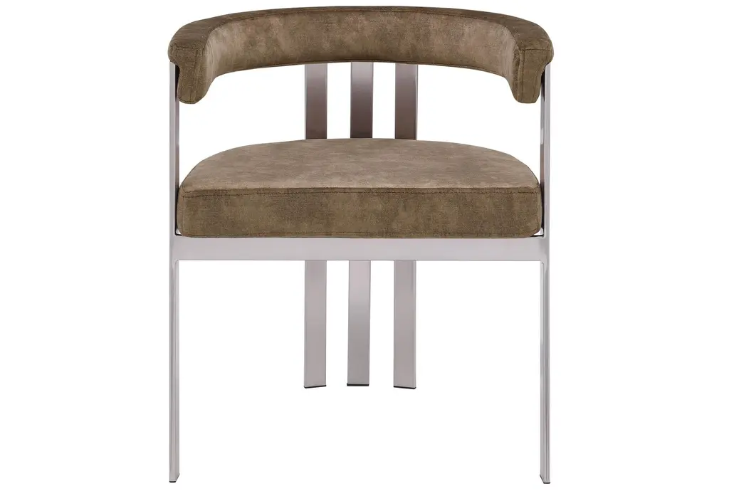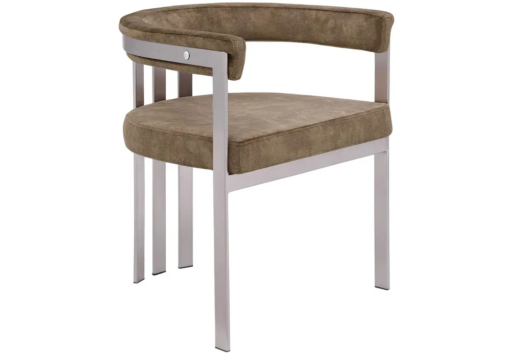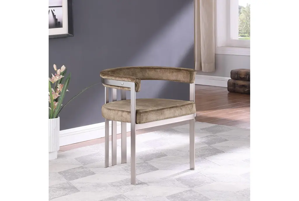 Marcello Brown Velvet Dining Chair With Brushed Silver Finish Set Of 2