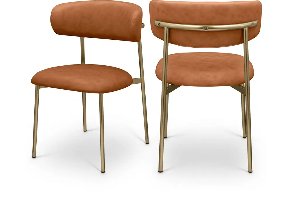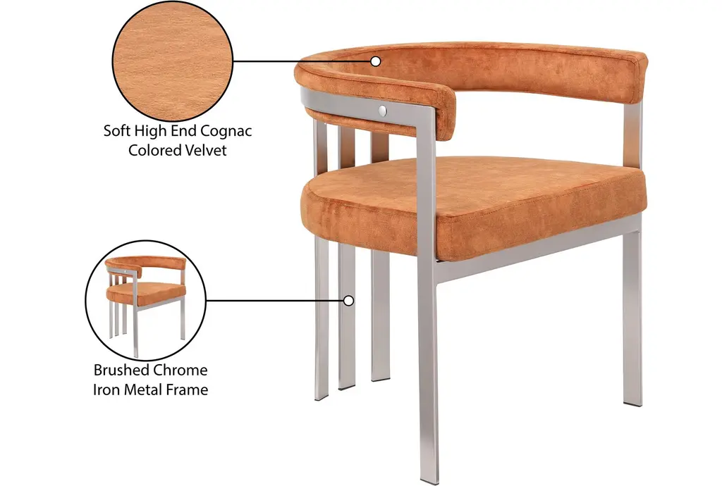 Marcello Cognac Velvet Dining Chair With Brushed Silver Finish Set Of 2