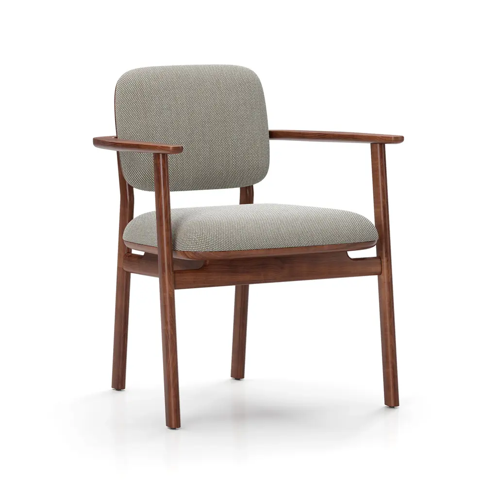 Rooted in Italian heritage and shaped by a contemporary Canadian sensibility, the Marea Dining Armchair is a sophisticated design by Alessandro Munge for Stellar Works. Each piece tells a story where softness meets strength and function embraces artistry. The chair’s poetic wooden profiles feature subtle curves and clean lines that flow harmoniously, creating a sculptural yet functional form. Designed to invite you to linger, it transforms the dining experience with a sense of quiet, enduring beauty. Highlights: