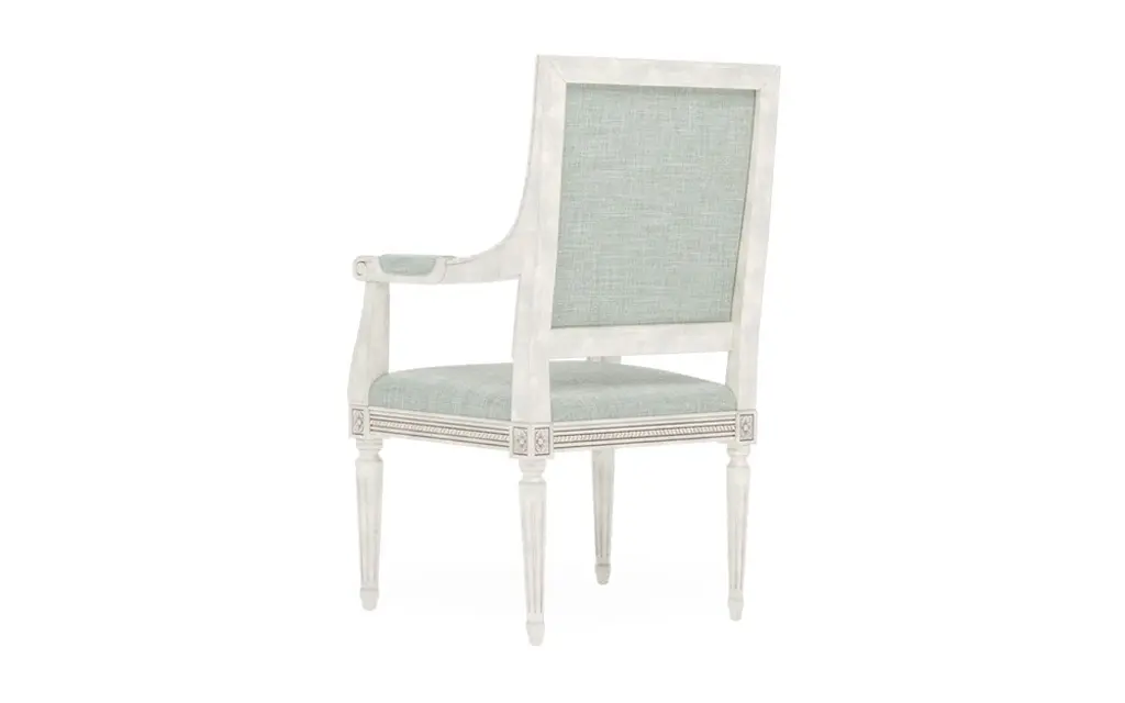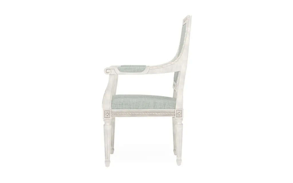Marielle Spring Blue Textured Weave Vintage White Dining Arm Chair