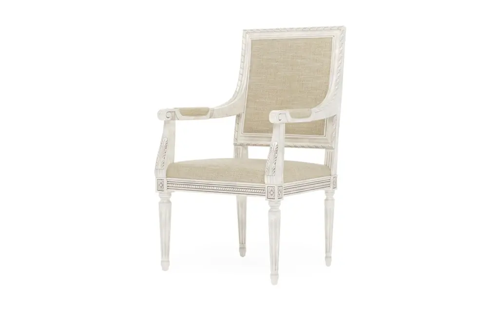 Marielle Willow Green Velvet Vintage White Dining Arm Chair