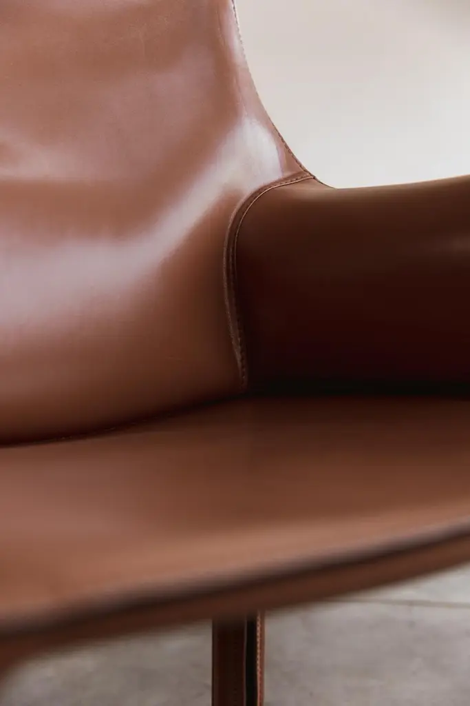 Mario Bellini "Cab 413” Chair For Cassina, Hazelnut Leather, 1977