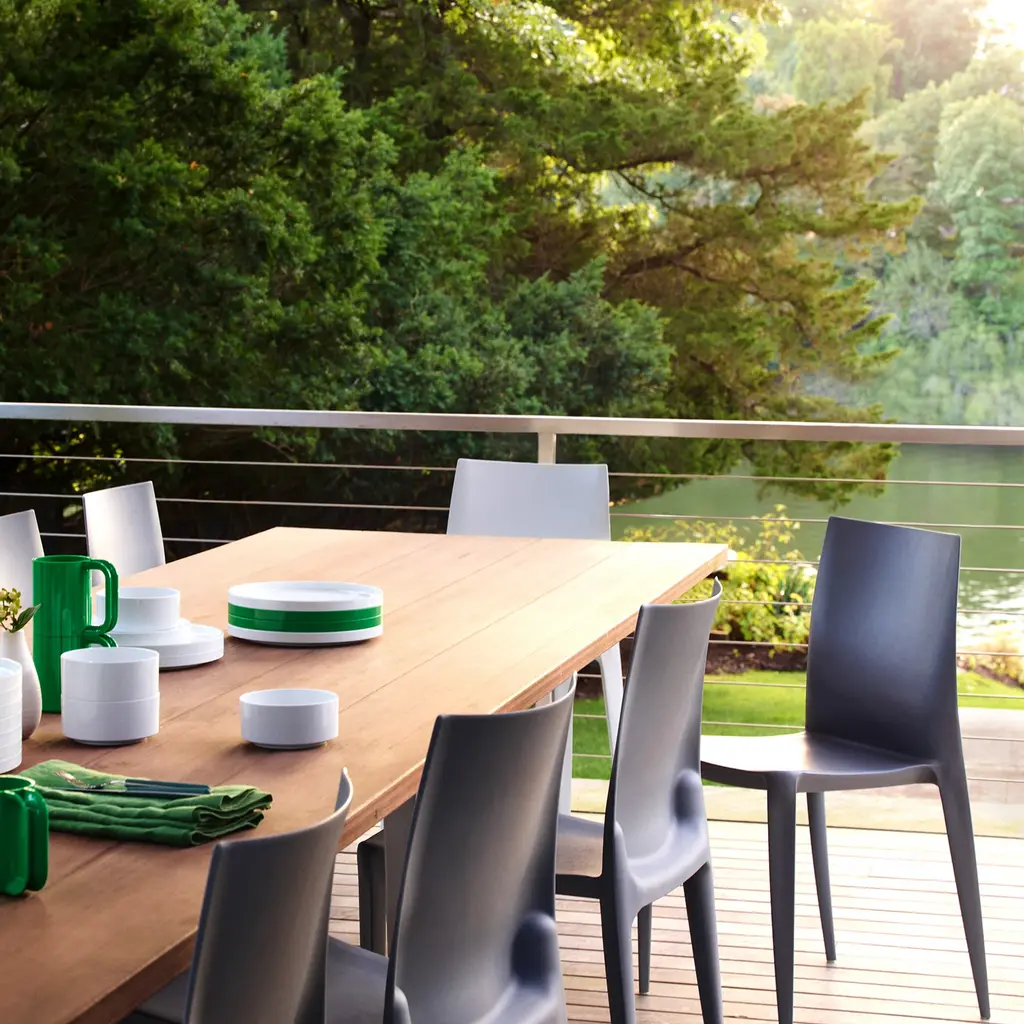 A minimalist classic that can live indoors or out. Timelessly modern, this indoor-outdoor chair was conceived in 1998 by Mario Bellini, and is an object in MoMA’s collection. Distinguished by sleek, sculptural lines, the Bellini is exceptionally comfortable, boasting a slightly flexible back. Made in the USA from highly durable and lightweight fiberglass-reinforced polypropylene, the chair—which is offered here in a set of two—is stackable up to six chairs for convenient storage. The chair’s minimalist look allows it to fit seamlessly into your home decor and can be used at your dining table, in the patio and as a convenient seat in any room. The Bellini Stacking Chair is produced by Heller, a manufacturer with work in MoMA’s collection, and each one in this set of two measures 33h x 17.3w x 18”d.