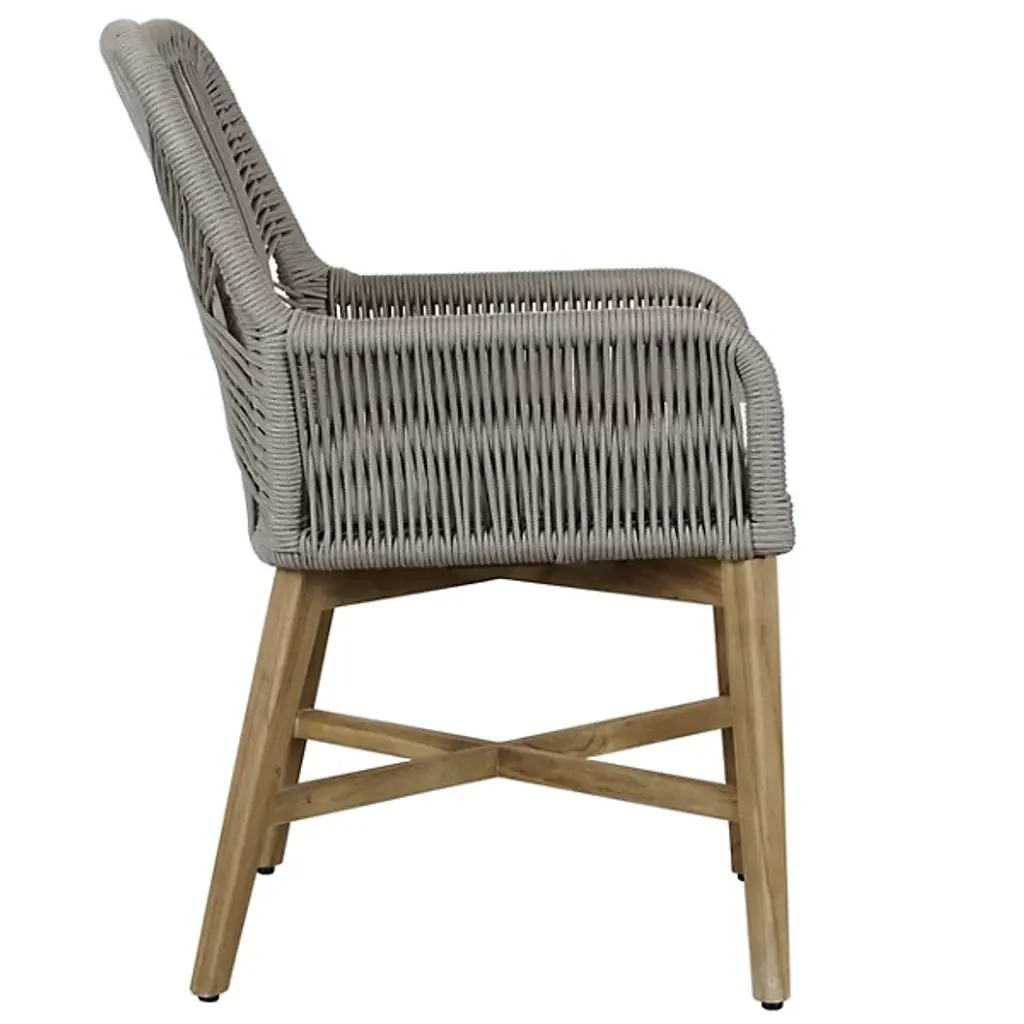 Expertly crafted with an intricate crisscross weave, the Marley Outdoor Dining Chair from Classic Home elevates any outdoor space into a chic retreat. The durable wooden frame provides a sturdy foundation, while the weather-resistant weaving ensures long-lasting beauty and functionality, even in challenging conditions. Thoughtfully designed with armrests and a footrest, this chair combines comfort with style, making it perfect for patios, gardens, or decks. Its blend of craftsmanship and practicality creates an inviting and elegant addition to your outdoor decor.