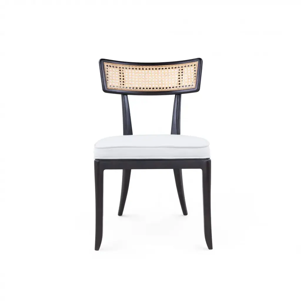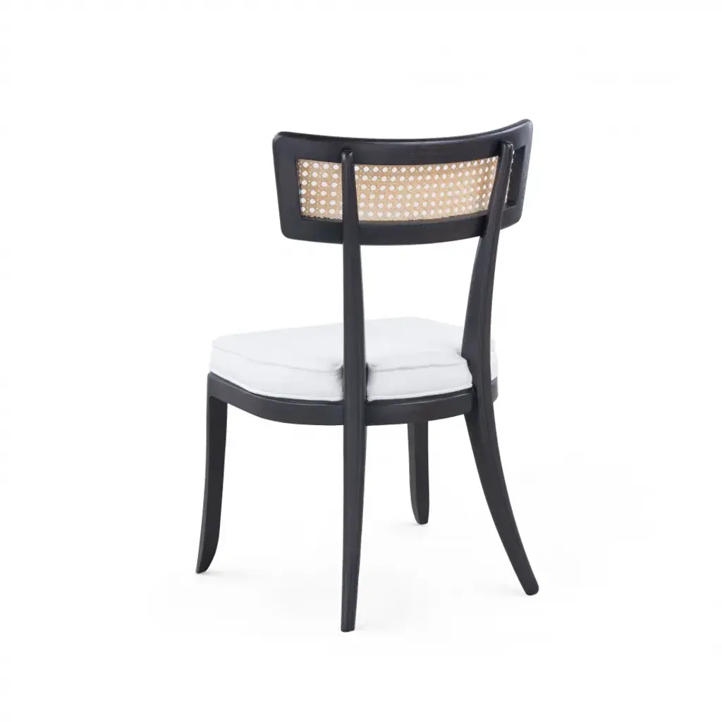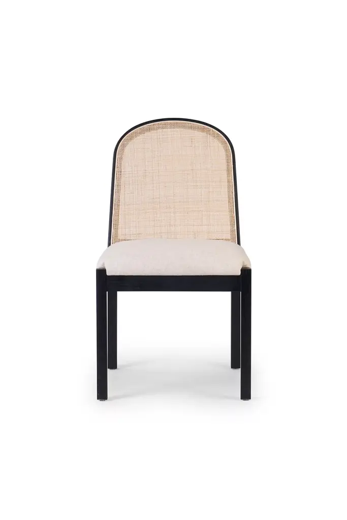 The Marshall Chair Collection is a wonderfully avant-garde addition to our seating selections. With a slight nod to the Art Deco period of the late 1930s, this piece is crafted from solid wood and bleached octagonal cane. The back is slightly curved, and the seat is fitted with a welted natural linen cushion. The Marshall Side Chair is a standout addition to any dining room, office, or den.
