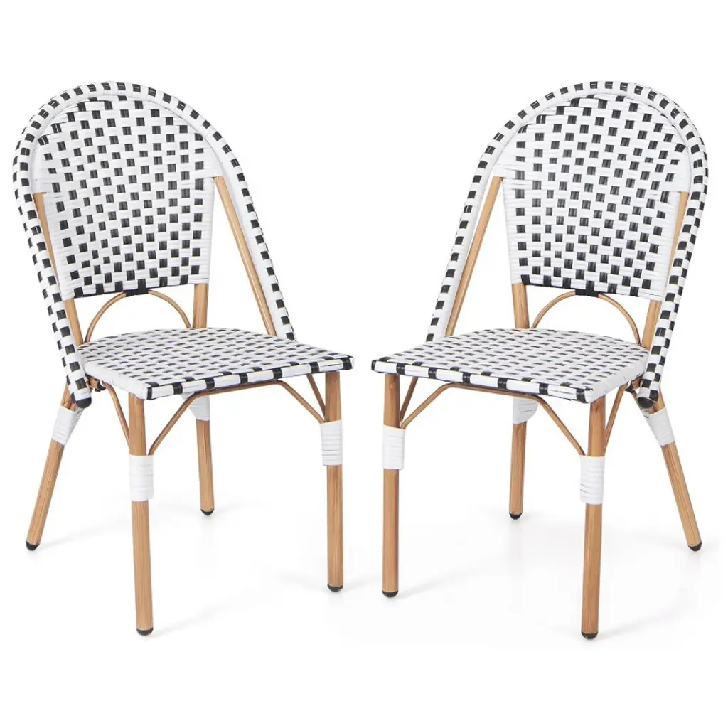 Martha Stewart 2Pk All-weather Stackable Patio Bistro Dining Chairs - Blk/wht With Nat Frames