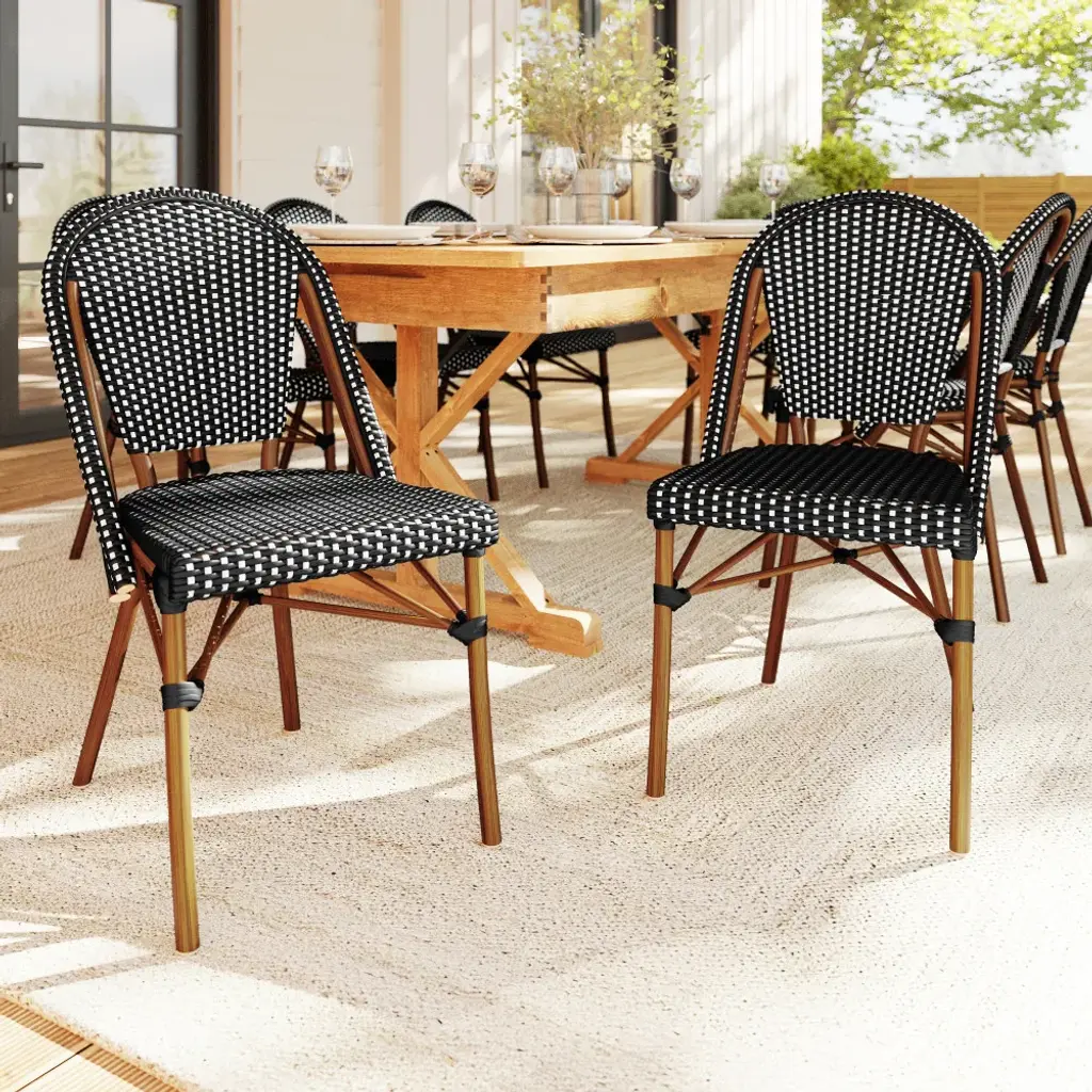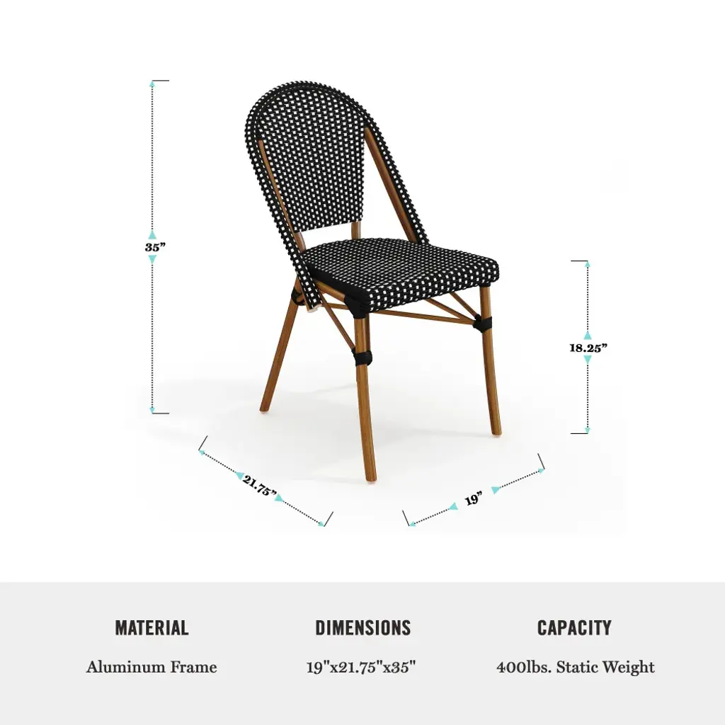 Martha Stewart All-Weather Stackable Patio Bistro Dining Chair - 19"w X 21.75"d X 35"h - Black & White/natural Frame