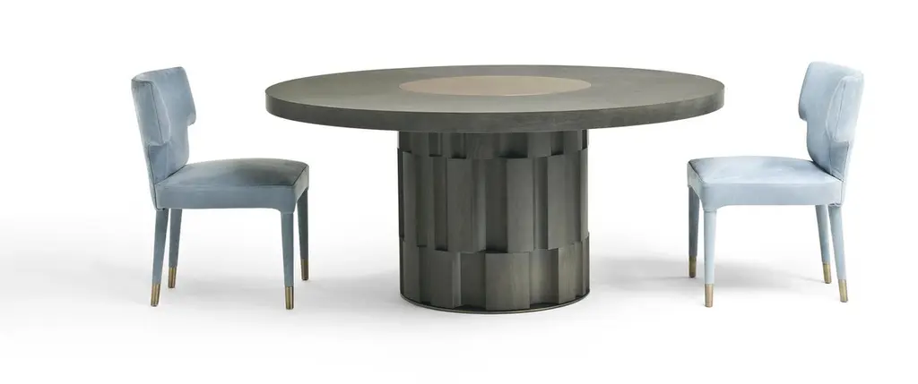 Unveiling the Martinica Chair—a captivating creation by Dainelli Studio and Fratelli Boffi, meticulously handcrafted in Italy to redefine the essence of dining elegance. The chair's enchanting design, marked by enveloping shapes that effortlessly captivate the gaze, stands as a testament to artisanal excellence.This fully upholstered dining chair features a gracefully curved back, creating an inviting silhouette that beckons you to indulge in unparalleled comfort. The legs and structure of the Martinica are adorned with the richness of Nabuk leather, adding a touch of luxurious sophistication to its overall aesthetic.Embrace the decorative and precious spirit of the Martinica Chair as it takes center stage in your dining space. The fabric, adorned with quirky brass caps, elevates this piece to a realm of refined artistry. The dark bronzed brass tips, hand-brushed to perfection, add a subtle gleam, further enhancing the chair's allure.Elevate your dining experience with the Martinica Chair—a harmonious blend of enveloping shapes and luxurious materials. Indulge in the perfect fusion of comfort and style, where each detail reflects the legacy of Italian craftsmanship at its finest.