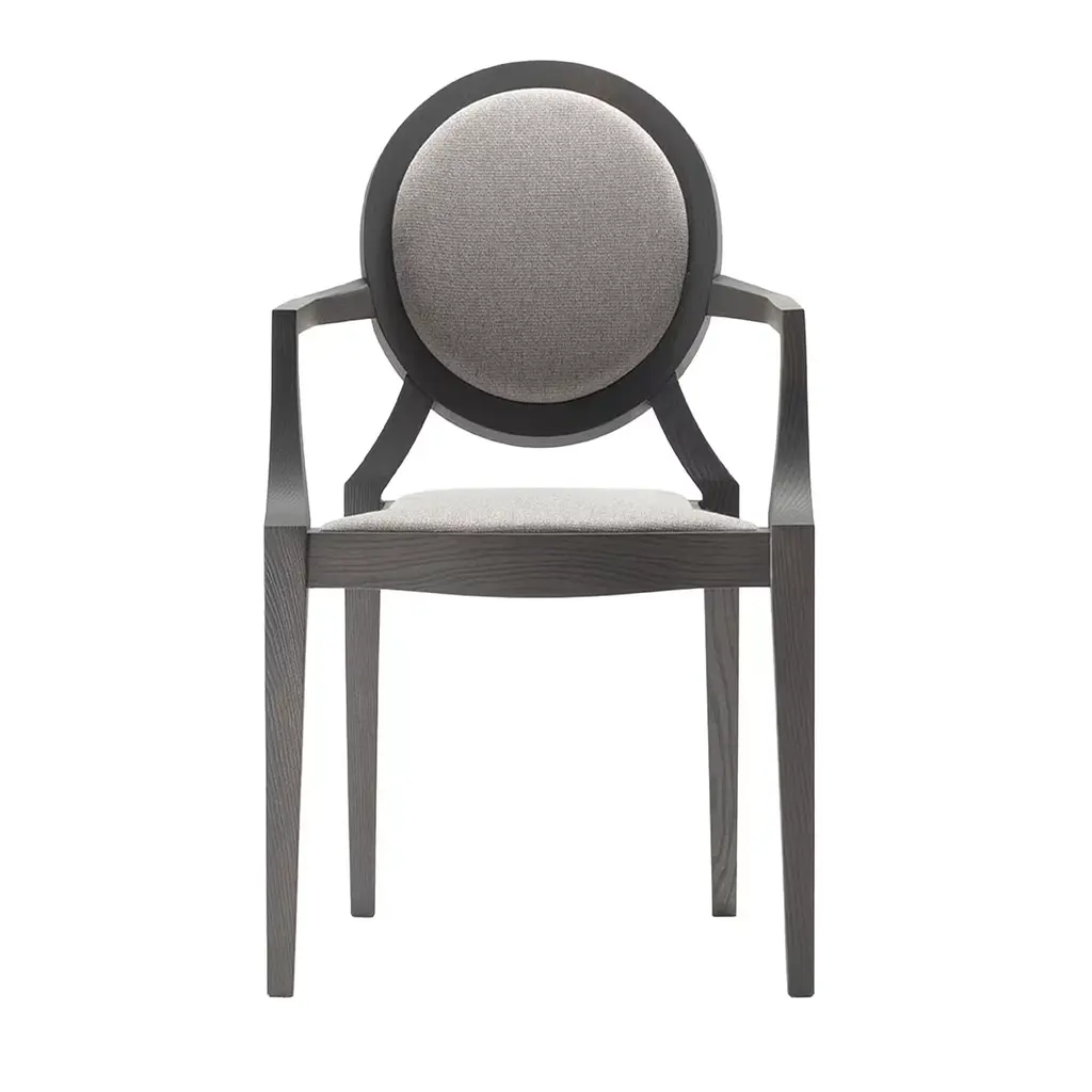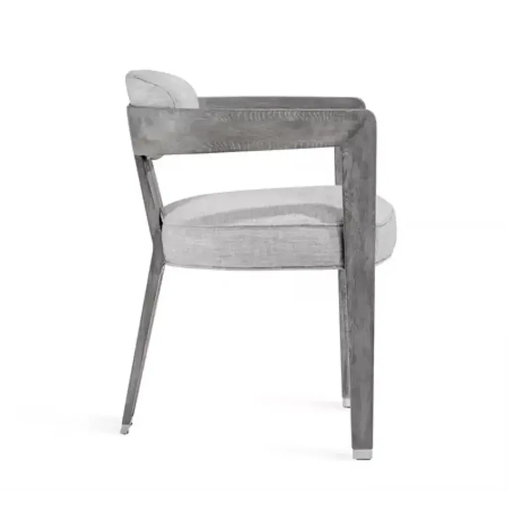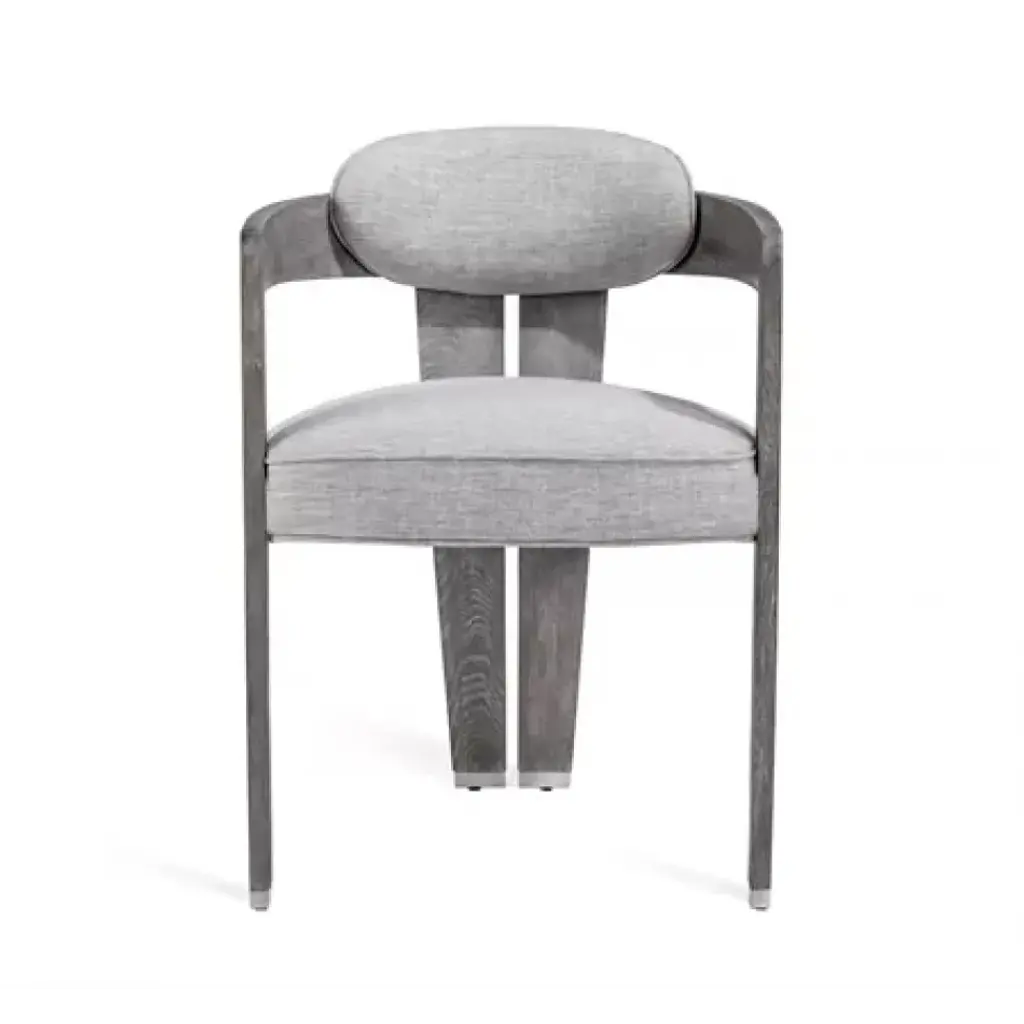 A heathered grey linen seat perfectly complements the grey wash oak finish of the Maryl II Dining Chair's wood frame.