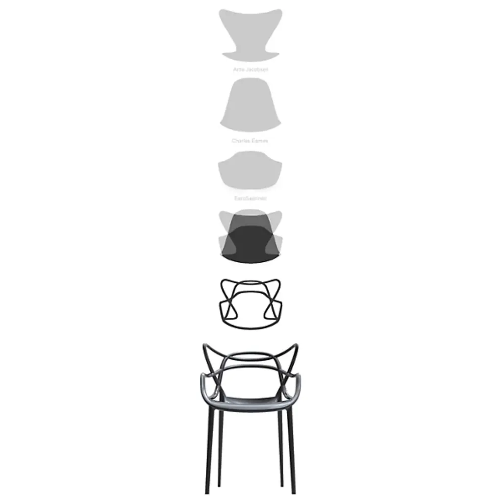 Contemporary designers Philippe Starck and Eugeni Quitllet pay dutiful homage to their predecessors by seamlessly combining Jacobsen's, Saarinen's, and Eames' most famous chair designs into a single piece. The Kartell Masters Chair is especially beneficial when furnishing a kitchen or dining room. Each piece is suitable for outdoor use.