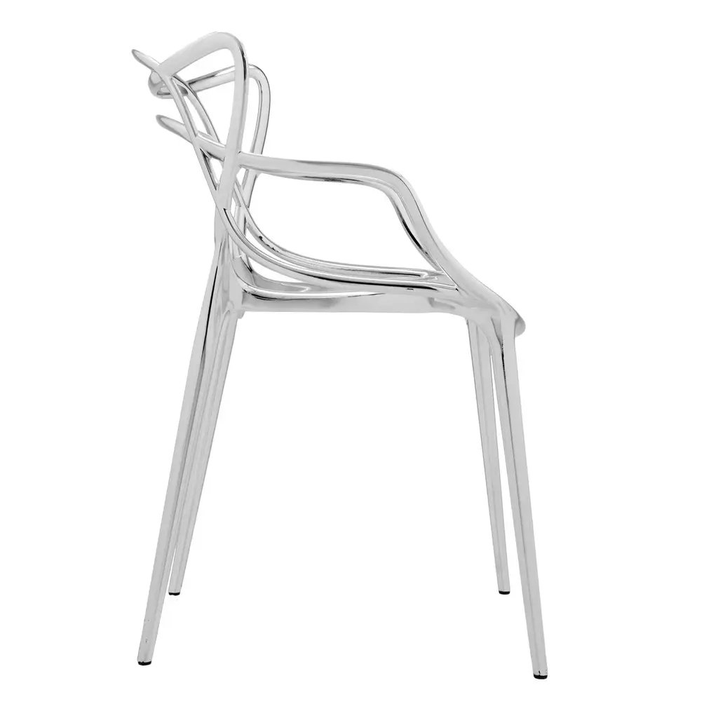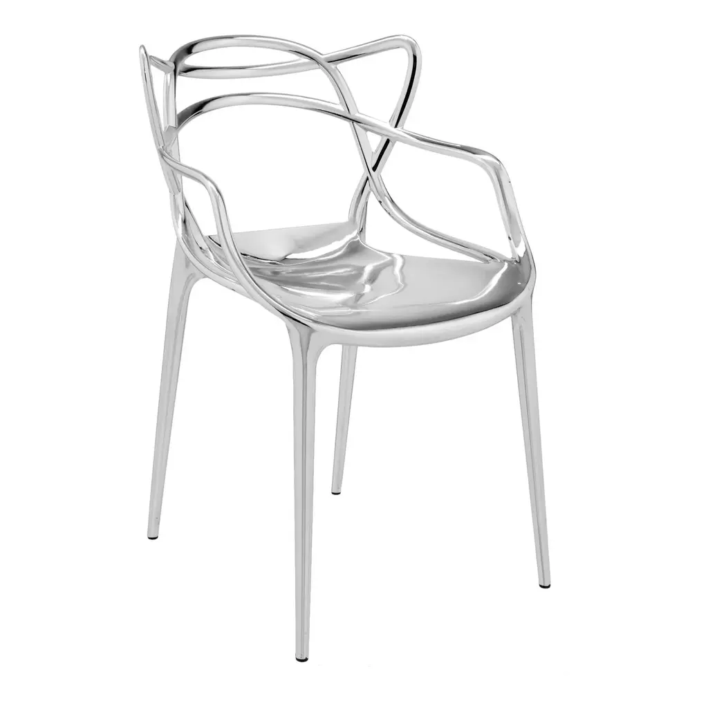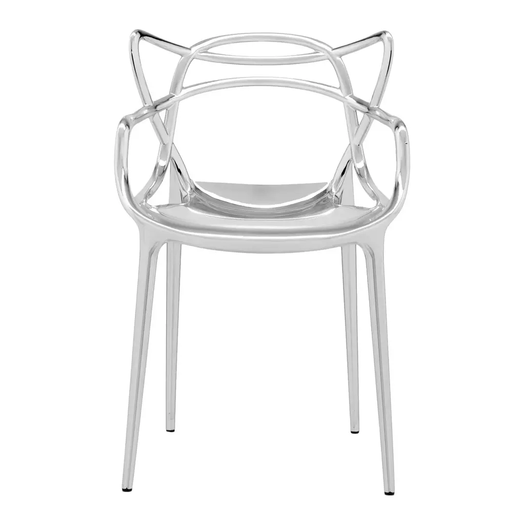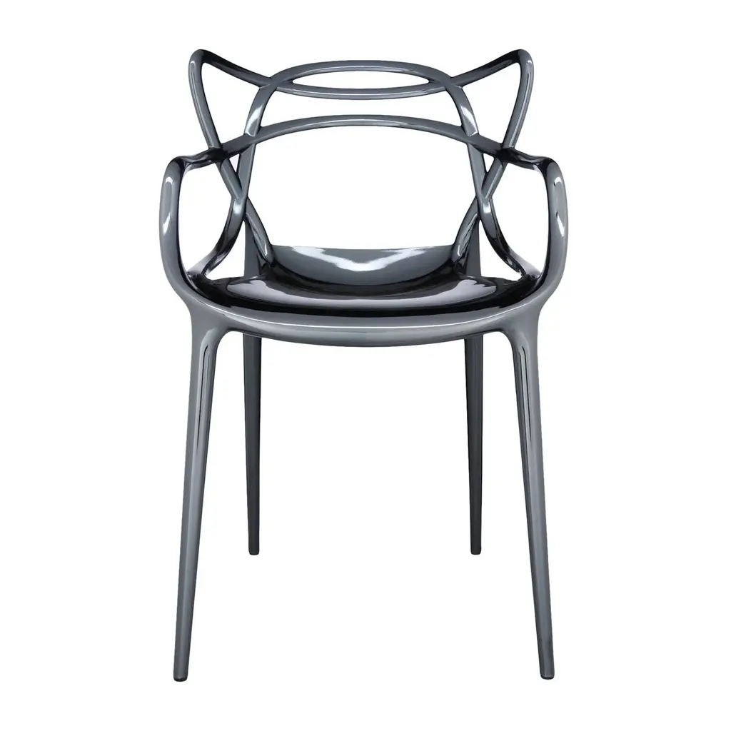 The Masters Metal Arm Chair by Kartell is a powerful tribute to three iconic designs, re-interpreted by the creative genius of Phillipe Starck. The unmistakable silhouettes of "Series 7" by Arne Jacobsen, the "Tulip Armchair" by Eero Saarinen and the "Eiffel Chair" by Charles Eames are interwoven into a modern day icon, through the fusion of original and engaging styles. Light, practical, and eye-catching, this dining chair is ready to be used both indoors and out, and stacked for easy storage when not in use.Highlights