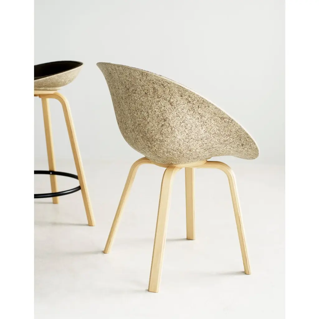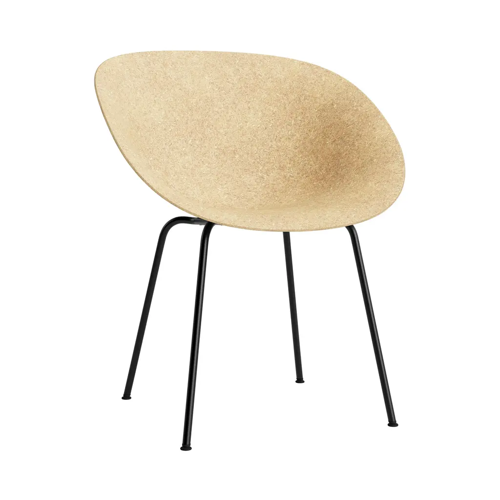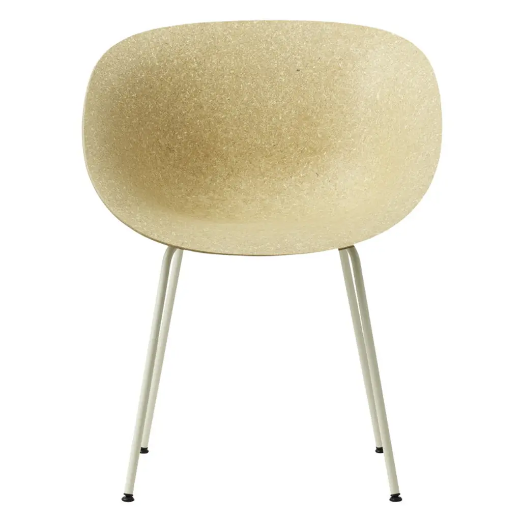 Normann Copenhagen's Mat armchair features a timeless and clean-lined design. The versatile chair's minimalist look sits effortlessly in various rooms and spaces, from home dining rooms to office boardrooms. The armchair is part of the Mat collection, designed by Foersom & Hiort-Lorenzon. The name of the series, "Mat", stands for "material," reflecting the chair's construction from a groundbreaking blend of hemp and polyester fibers. This material is the outcome of years of research and development, contributing not only to the chair's simple appearance but also to its environmental sustainability. The Mat collection is designed for full recyclability, allowing for the disassembly and repurposing of its components into new products.