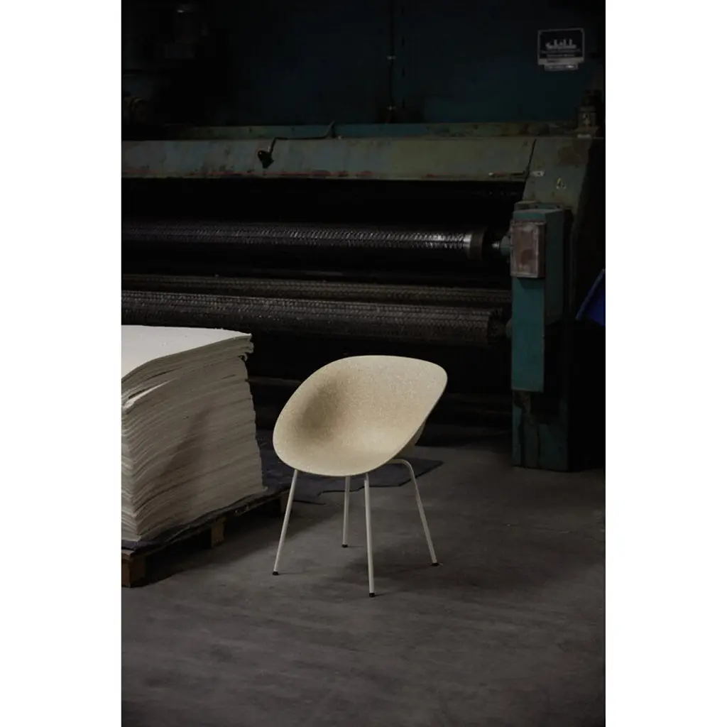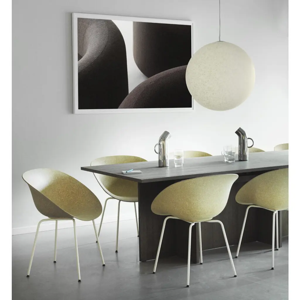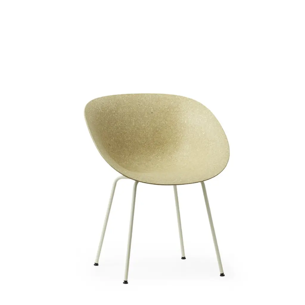 Normann Copenhagen's Mat armchair features a timeless and clean-lined design. The versatile chair's minimalist look sits effortlessly in various rooms and spaces, from home dining rooms to office boardrooms. The armchair is part of the Mat collection, designed by Foersom & Hiort-Lorenzon. The name of the series, "Mat", stands for "material," reflecting the chair's construction from a groundbreaking blend of hemp and polyester fibers. This material is the outcome of years of research and development, contributing not only to the chair's simple appearance but also to its environmental sustainability. The Mat collection is designed for full recyclability, allowing for the disassembly and repurposing of its components into new products.
