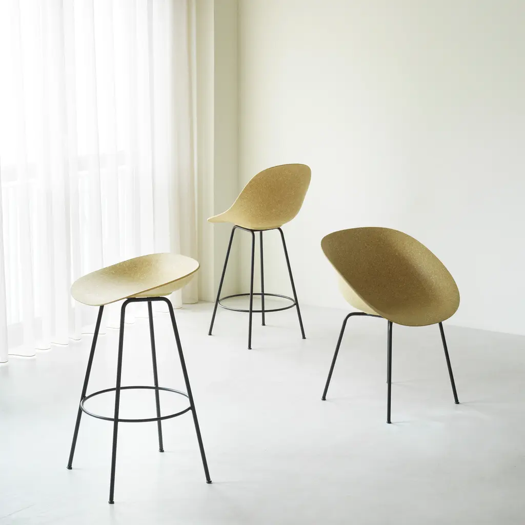 Challenging industry norms, Mat updates a Scandinavian totem in a dining chair that is innovatively crafted using hemp and eelgrass, a type of seaweed. Danish studio Foersom & Hiort-Lorenzen’s shell seating marries a more eco-friendly stance with a material that exudes a natural beauty and inviting tactility—and is fully recyclable to extend its life cycle.