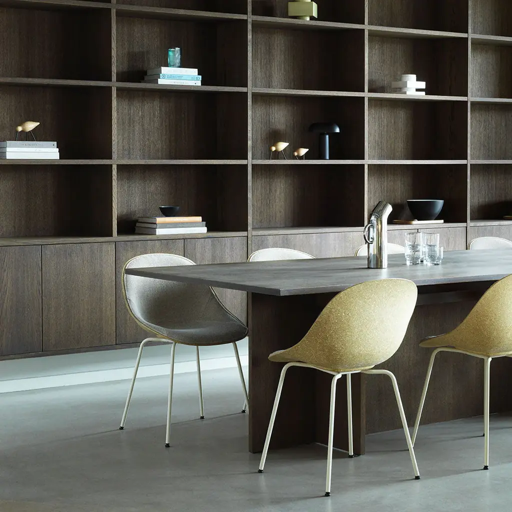 With innovation and circularity at its core, Mat is an exploration of how to create a contemporary shell chair with materials that have a lower environmental impact than the industry norm. Designed by Danish design studio Foersom & Hiort-Lorenzen, this new chair design is the result of years of research and development. The shell of the Mat Chair is innovatively crafted using hemp and eelgrass, a type of seaweed. The materials constitute the very essence of the design. Not only do the materials provide a more responsible product, they also play a key role in the aesthetic of the design, highlighting the natural beauty and tactility of the materials. With circularity and responsibility at its core, the Mat collection is designed for disassembly and recycling, ensuring that the components of the Mat Chair can be recycled into new productions for a fully circular life cycle. Mat Chair collection includes a dining chair with two shell typologies, a barstool in two heights, a bar chair in two heights and a bar armchair in two heights, all available with a hemp shell or a hemp shell with added eelgrass, as well as with front or full upholstery.