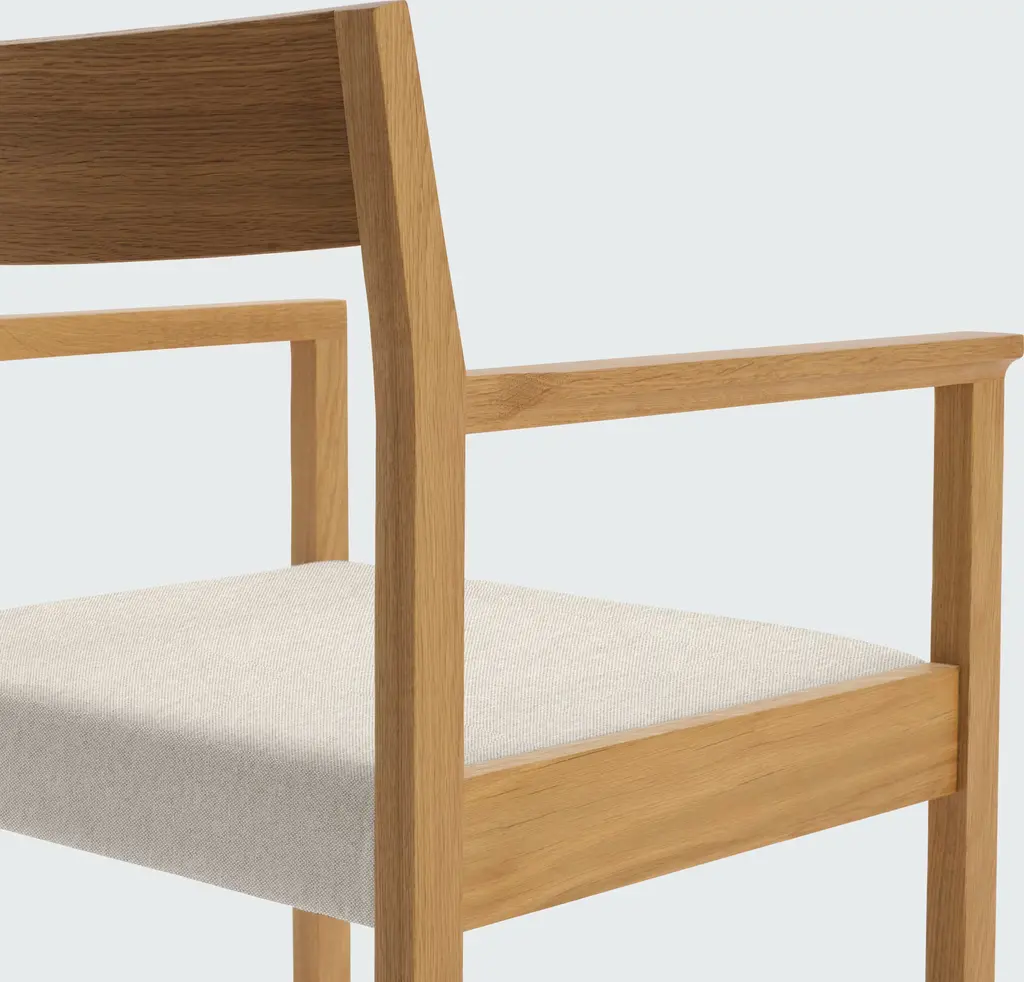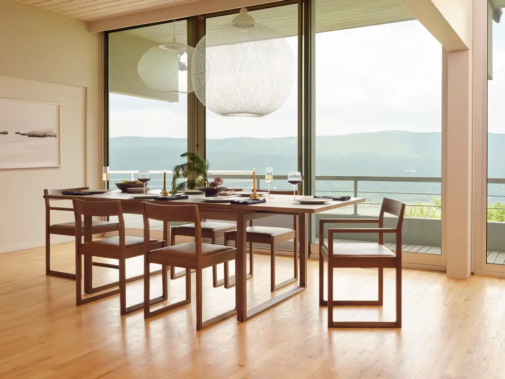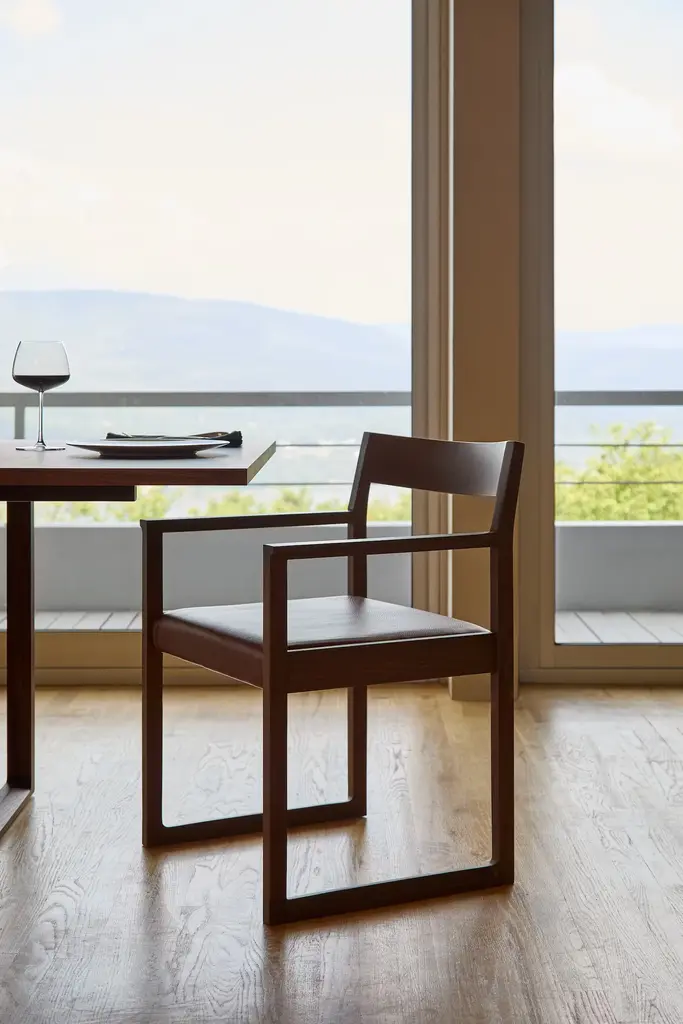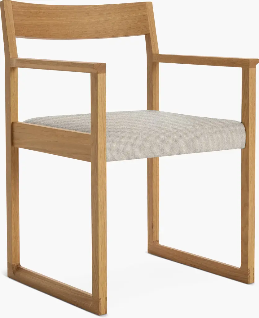 Designed by Sean Yoo for Design Within Reach, the Matera Dining Chair (2023) features clean lines, beveled edges, and slotted mortise-and-tenon corner joints in its beautifully crafted, solid wood frame. Its simple sled base and open back keep the silhouette light and airy, while the upholstered seat and gently curved, angled backrest keep you and your guests comfortable for long periods of time. Yoo credits Isamu Noguchi for inspiring his career in design. “I was particularly attracted to the way Noguchi applied sculptural qualities to common household items. It seemed to give meaning and purpose to otherwise meaningless objects," he says. Made in the USA.