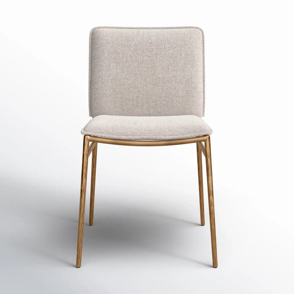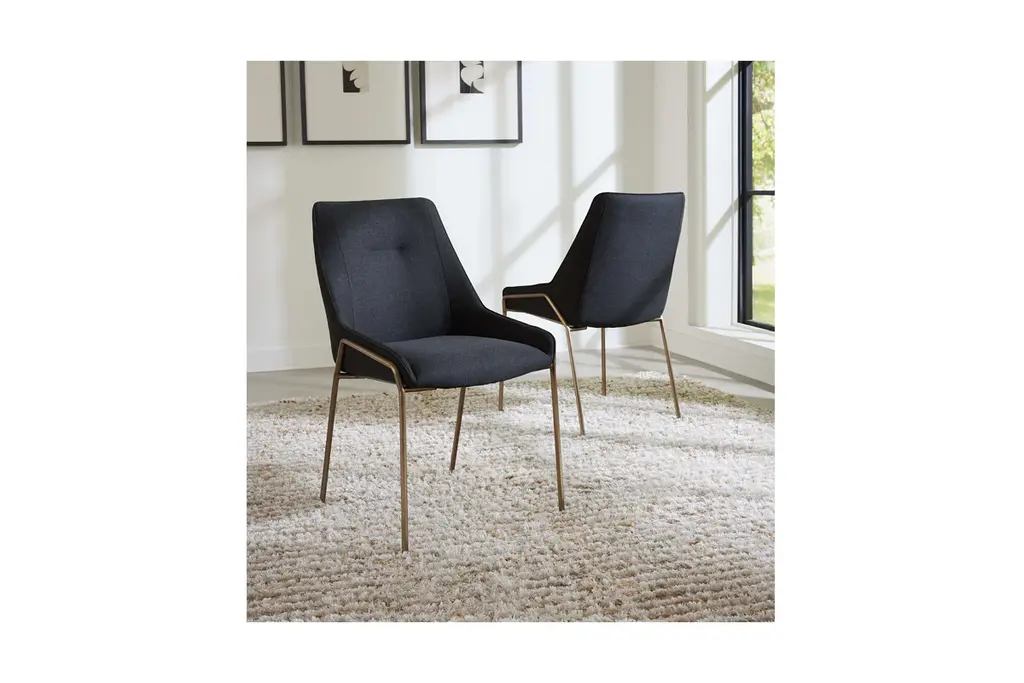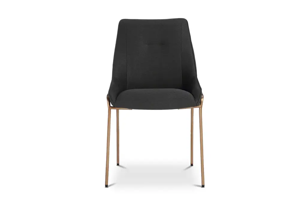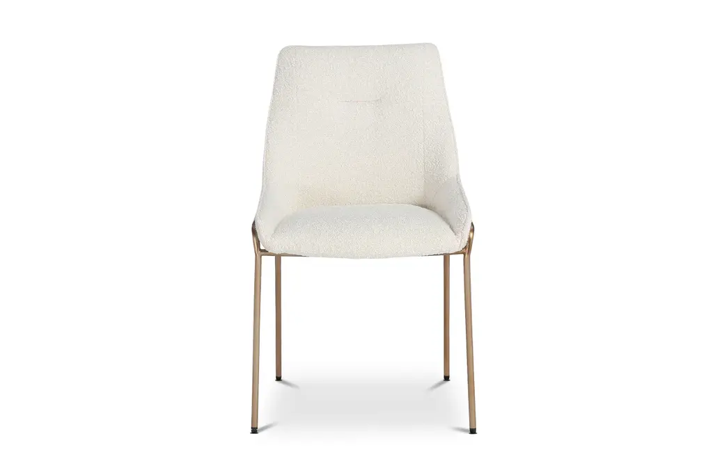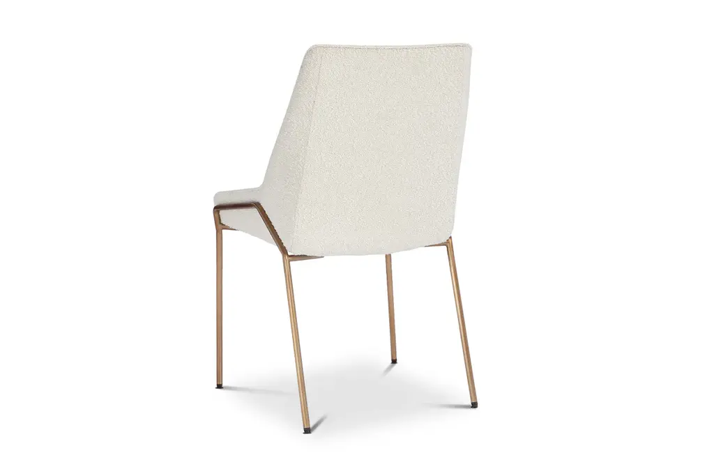 The Maude Dining Chairs feature bronze tubular steel frames and soft, seats in your choice of cream boucle or coal linen upholstery. Relax as you dine with an ergonomically pitched design and luxurious foam cushioning. The legs of the chairs also have non-marking nylon glides for added convenience.