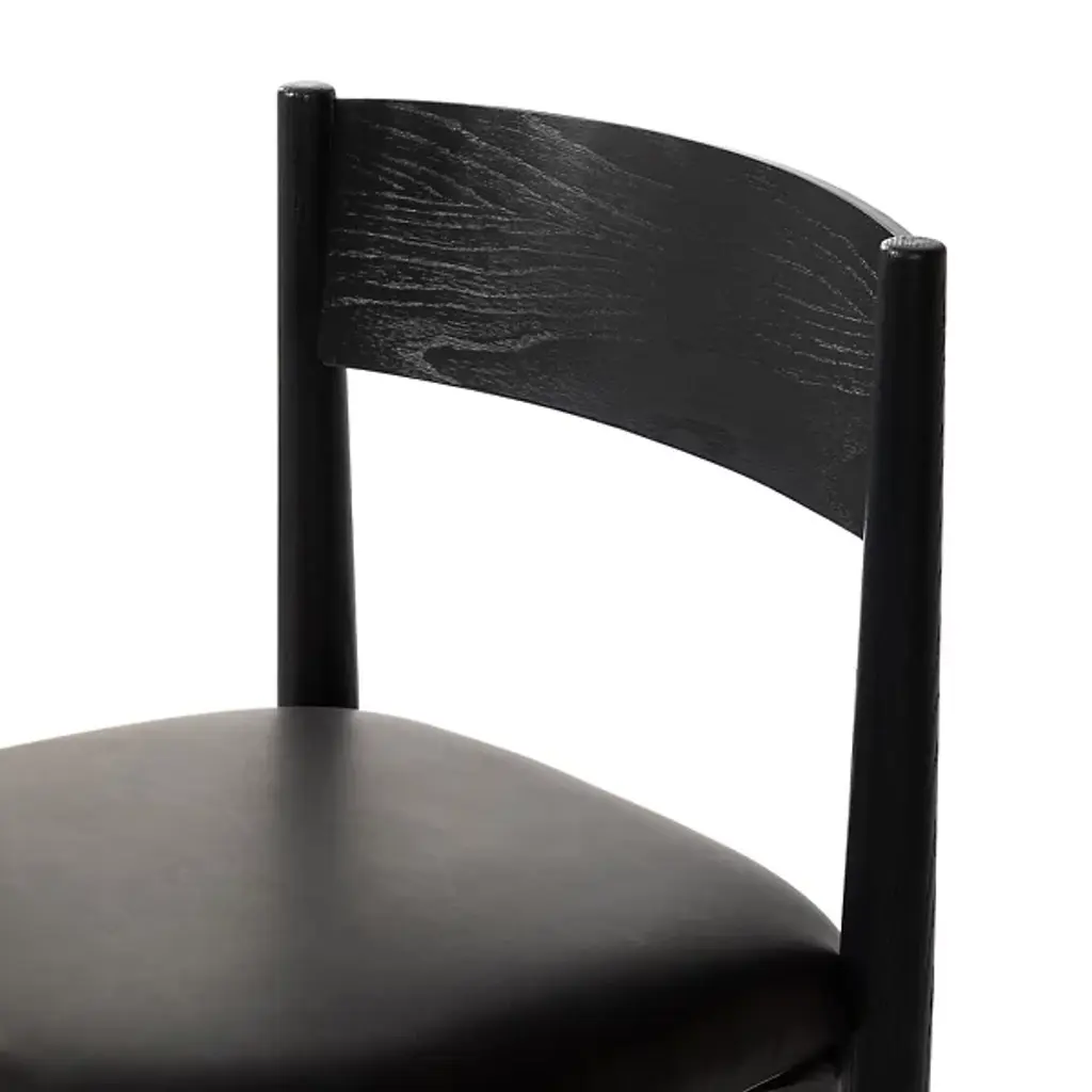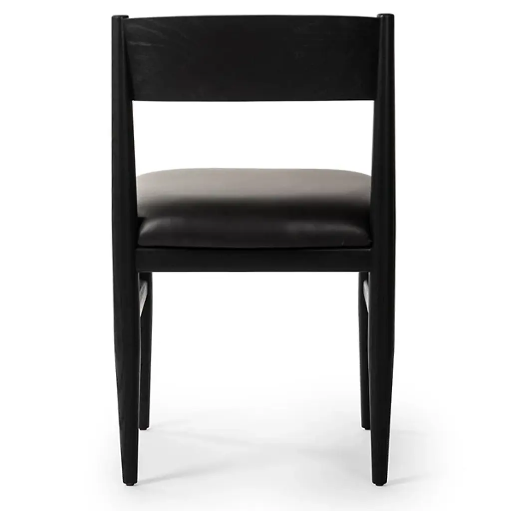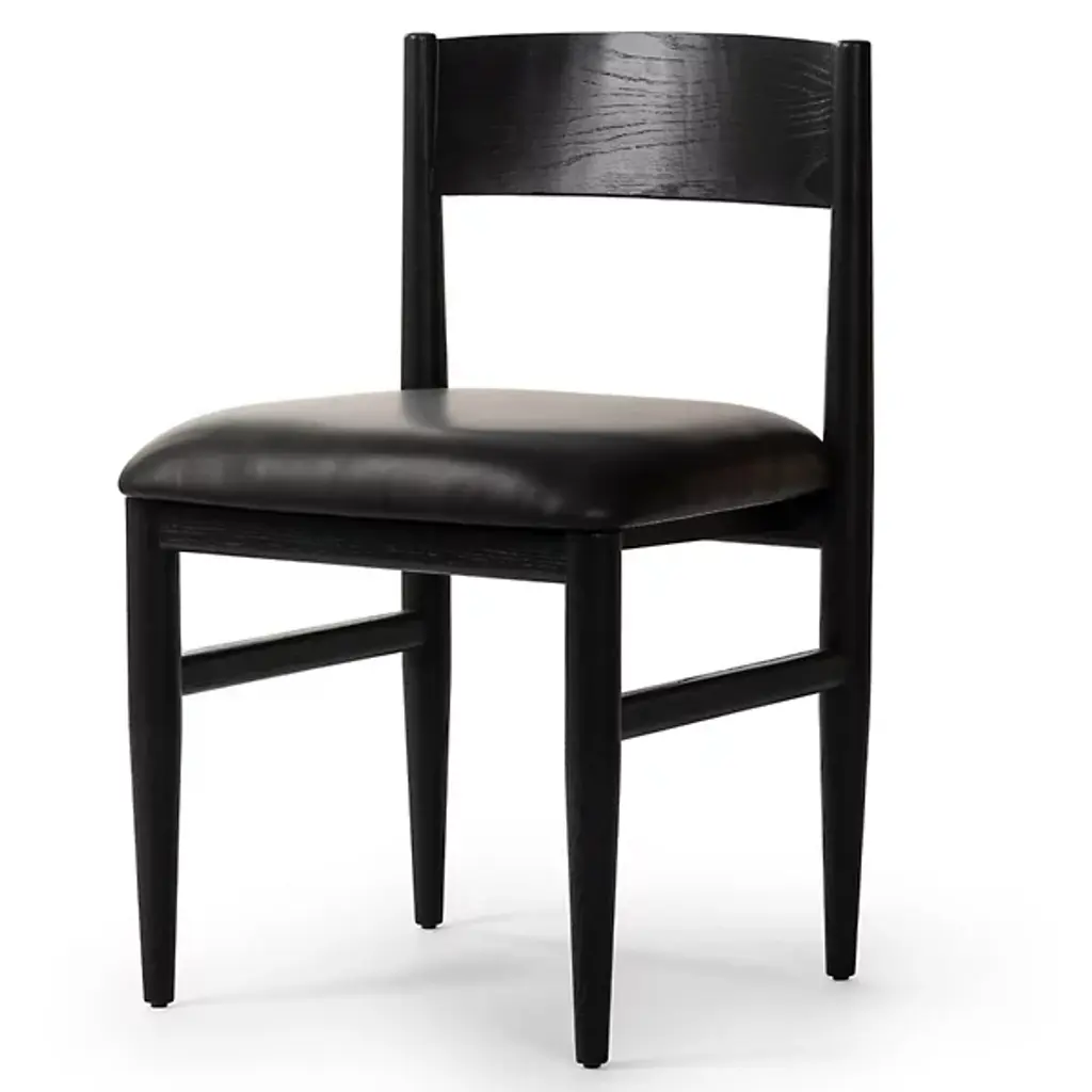 The Mavery Armless Dining Chair from Four Hands blends classic midcentury design with contemporary comfort. Crafted with oak veneer and solid oak, its tapered-leg structure exudes timeless elegance, while the espresso-brown faux leather cushion adds a touch of modern sophistication. With a filling of polyurethane foam and Dacron, this chair offers plush comfort for extended dining sessions. Combining Mid-Century Modern and Contemporary styles, the Mavery Dining Chair brings style and comfort to any dining space with its monochromatic aesthetic and inviting silhouette.