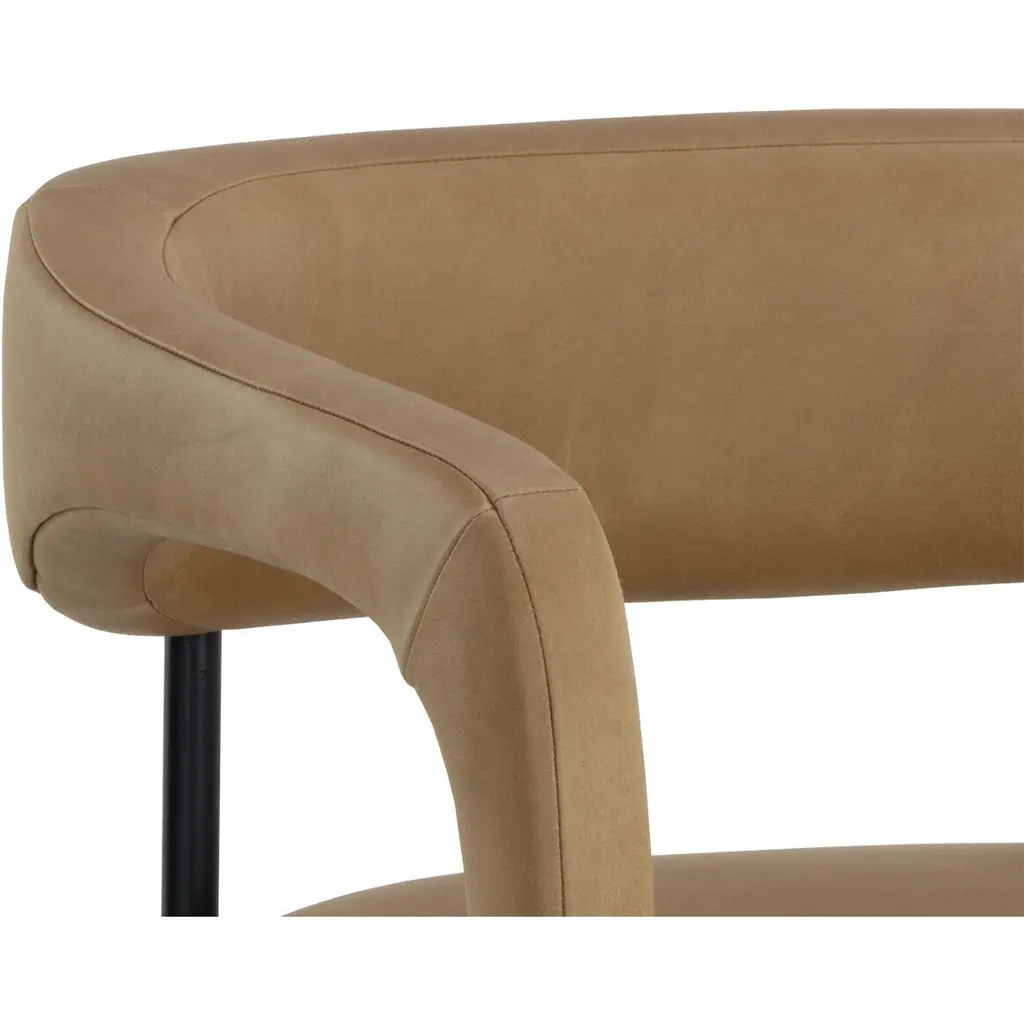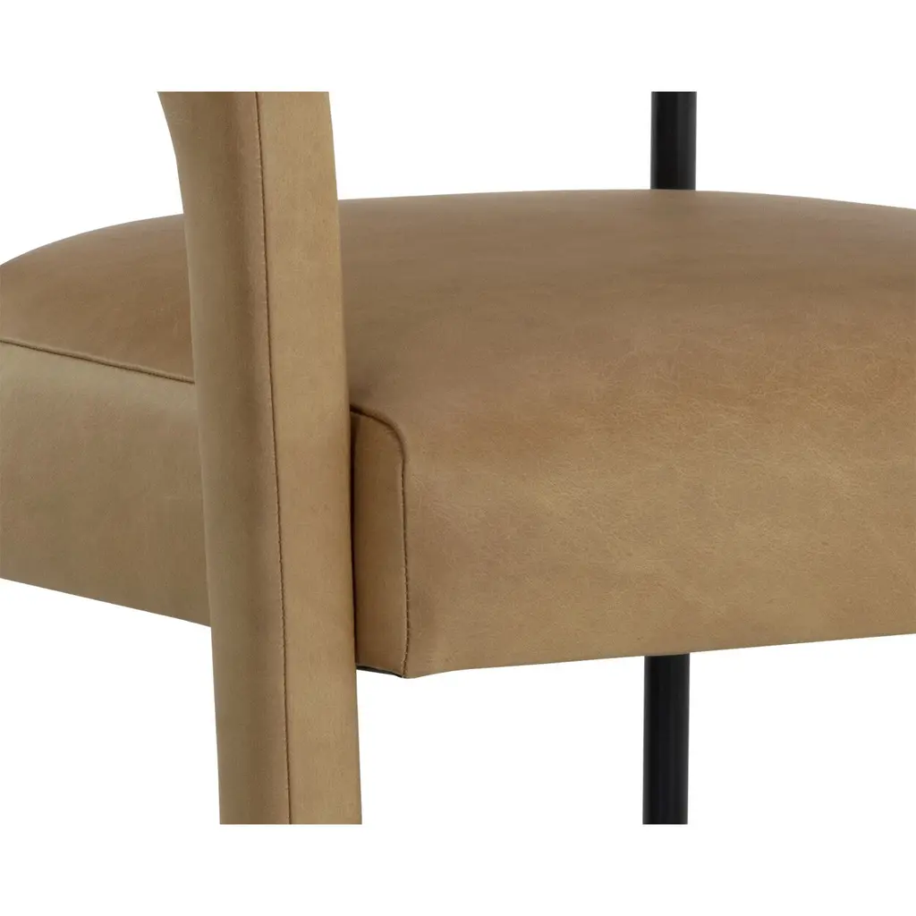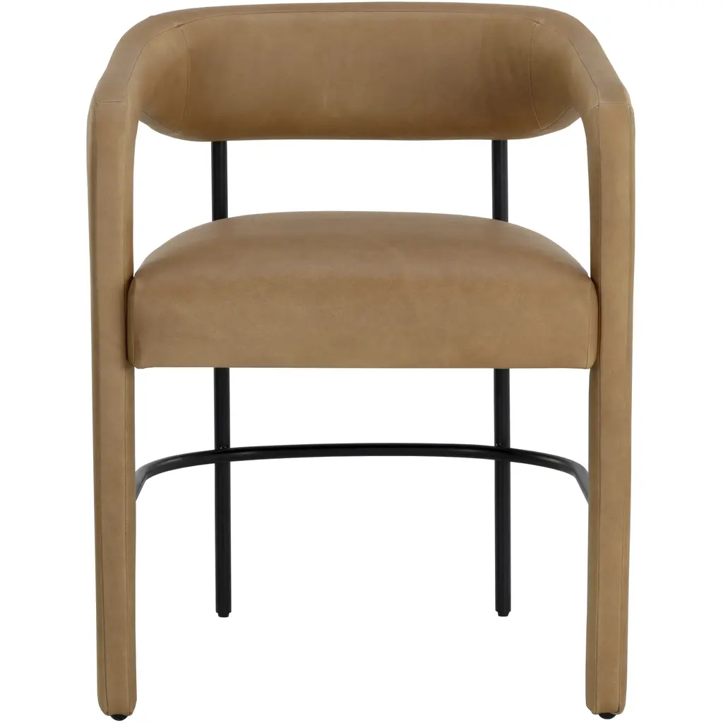Perfectly poised, the Mavia Dining Armchair brings a cool modern edge to any dining area. Our stunning ludlow sesame leather is wrapped around the seat, armrests and front legs while the rest of the black powder-coated frame remains exposed. Handle with Care: This design has been crafted with 100% leather. Leather is a natural material as such, colour variations, markings, wrinkles, grooves and light scratches are acceptable and appreciated characteristics. No two pieces are alike. Visit our Product Care page for more information on how to ensure the lasting beauty of this piece.
