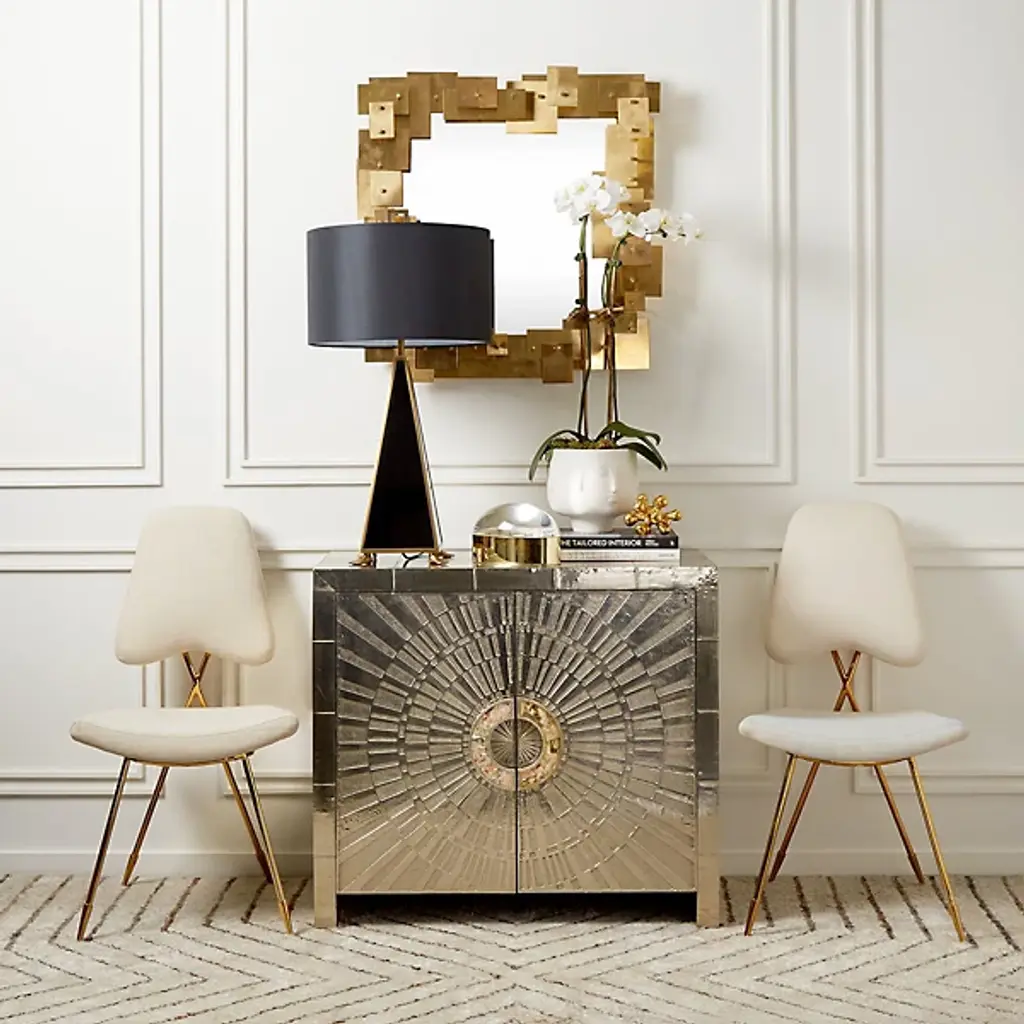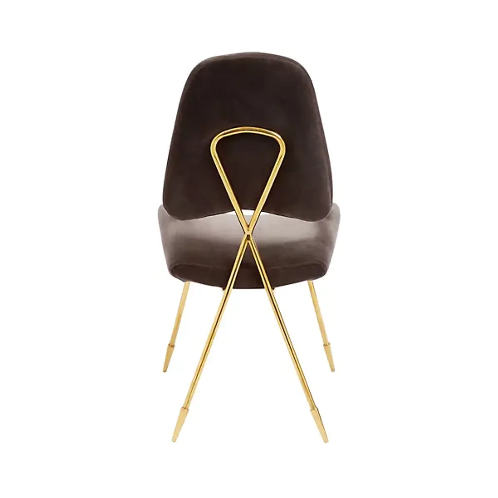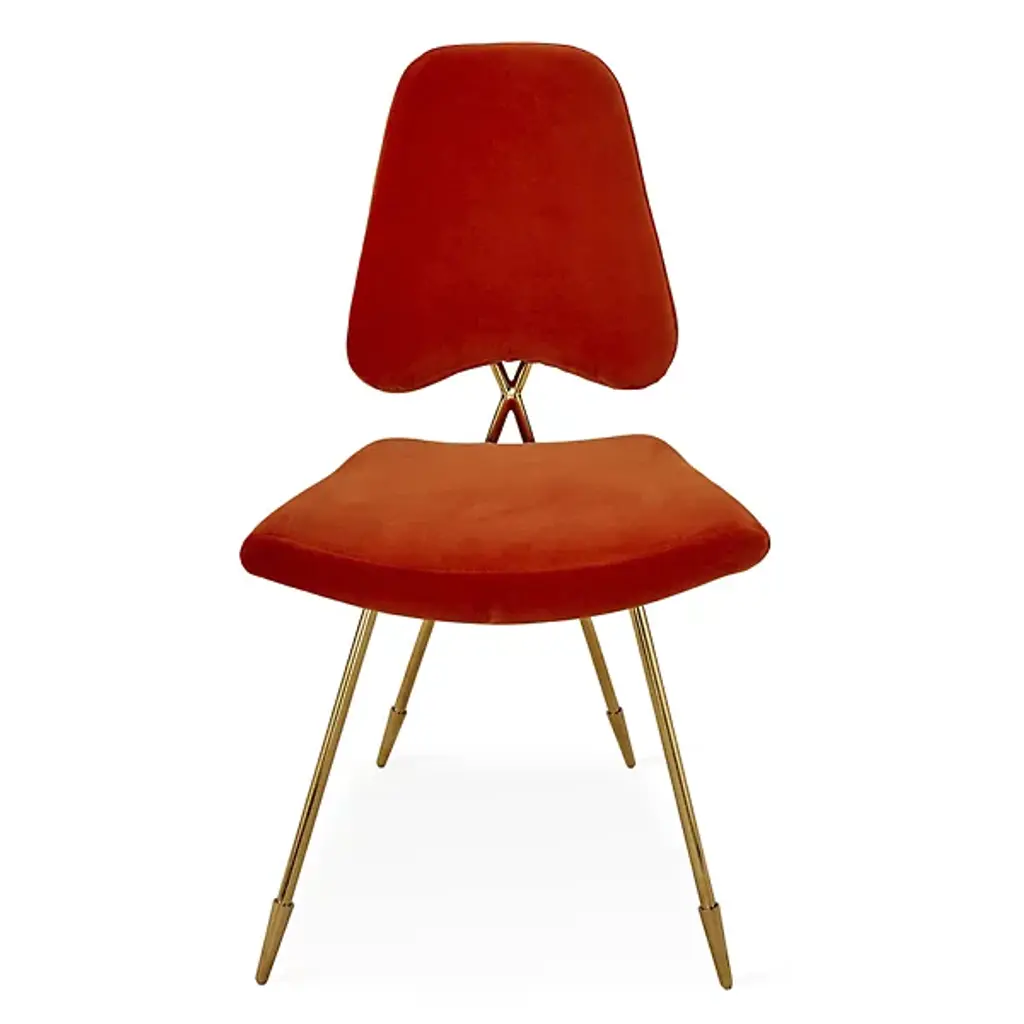 Minimalist and marvelously stylish, the Maxime Dining Chair from Jonathan Adler Brass is designed to look as good from the rear as it does from the front, taking its place in your indoor living spaces as both a robust seat and art installation. A Jonathan Adler design using the principle “If your heirs won’t fight over it, we won’t make it.” Four slender brass legs with pointed sabot tips angle up to a comfortable cushion and back upholstered in Belgian Stone Linen, while a looped back provides a stylish contrast.