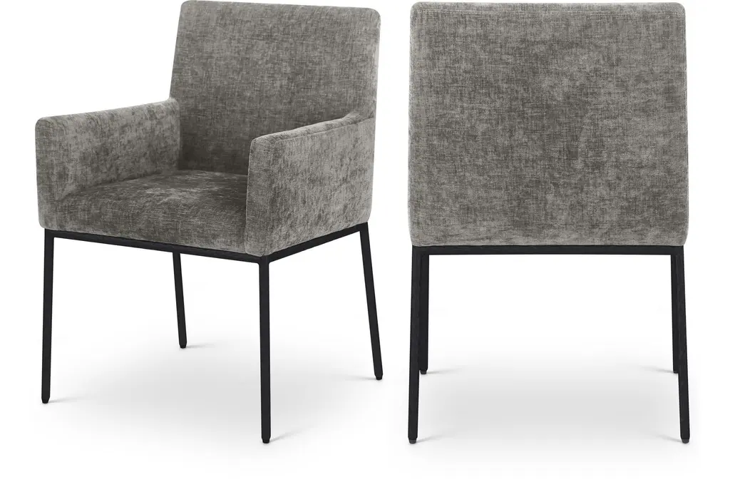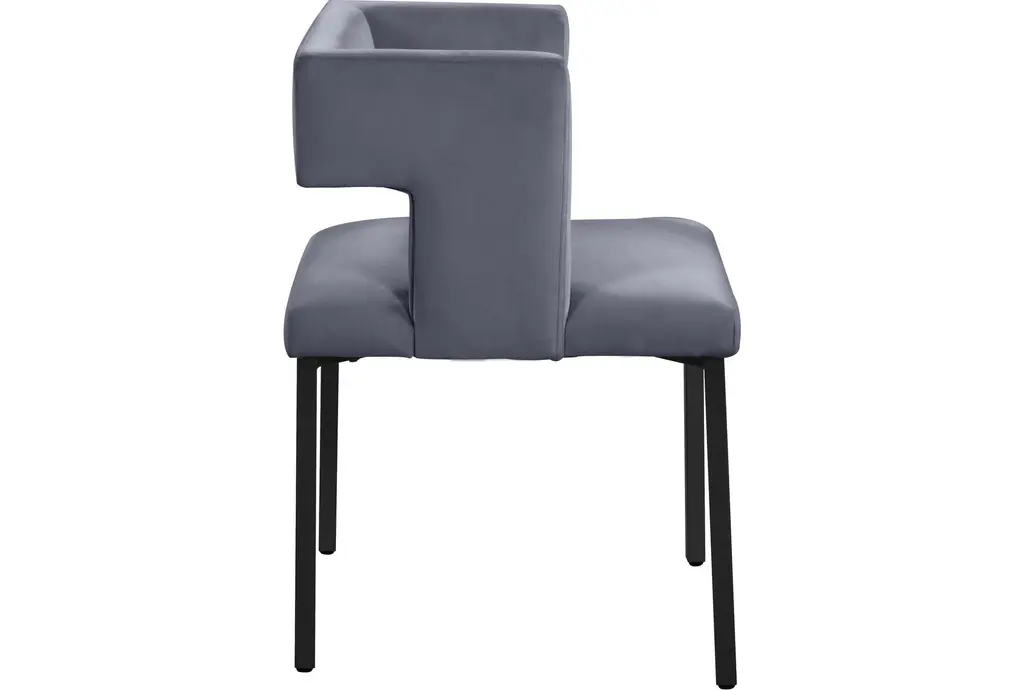 Meleb Grey Velvet Dining Chair With Matte Black Leg Frame Set Of 2 | Armless