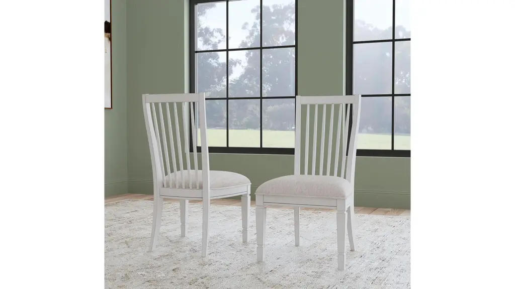 Create a cozy ambiance full of casual charm wherever people gather in your home with the Melody Dining Chair (set of 2). Bring a timeless warmth to dining spaces with enchanting Windsor-inspired design details, tapered legs and a beautifully soft, weathered look that perfectly complements a coastal or farmhouse design aesthetic. Upholstered in an appealing, stain-resistant performance fabric and exceptionally built with solid wood construction, the Melody dining chair is well-crafted to offer years of lasting enjoyment.