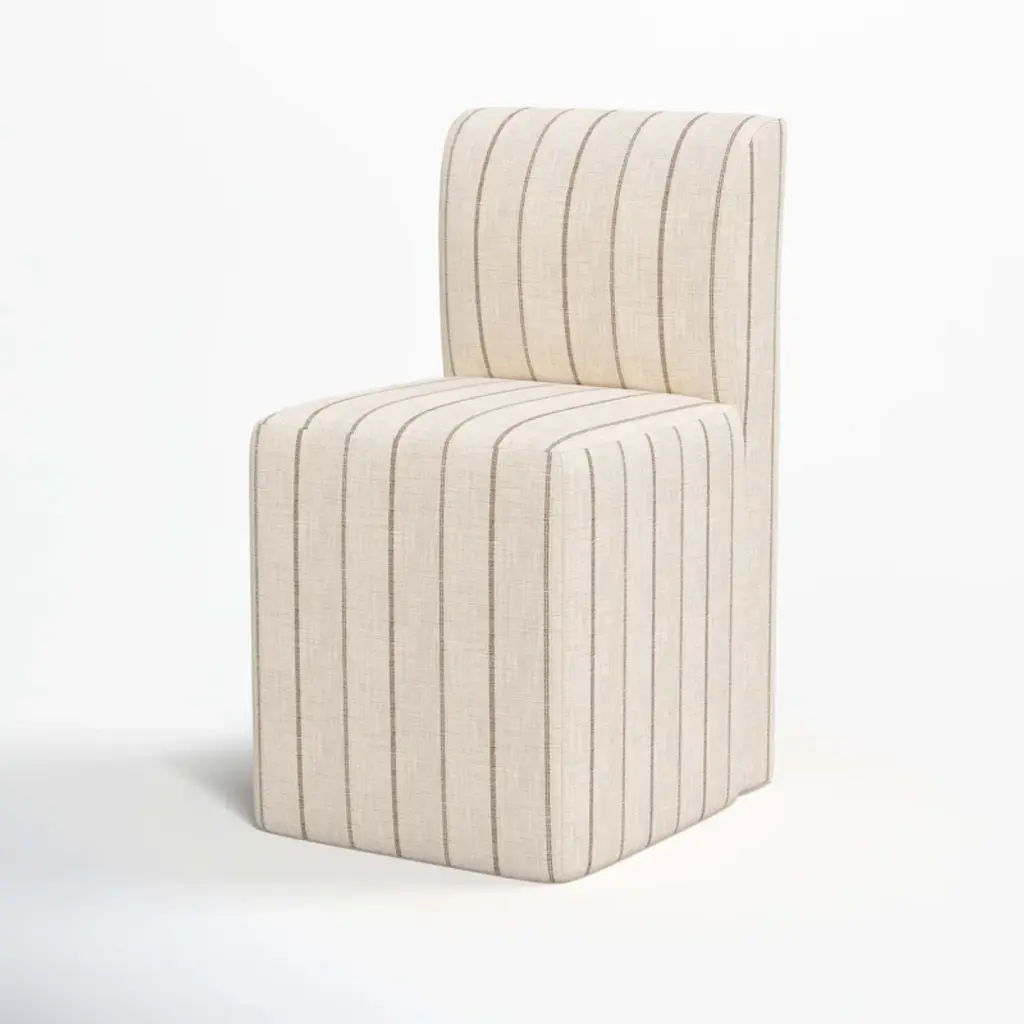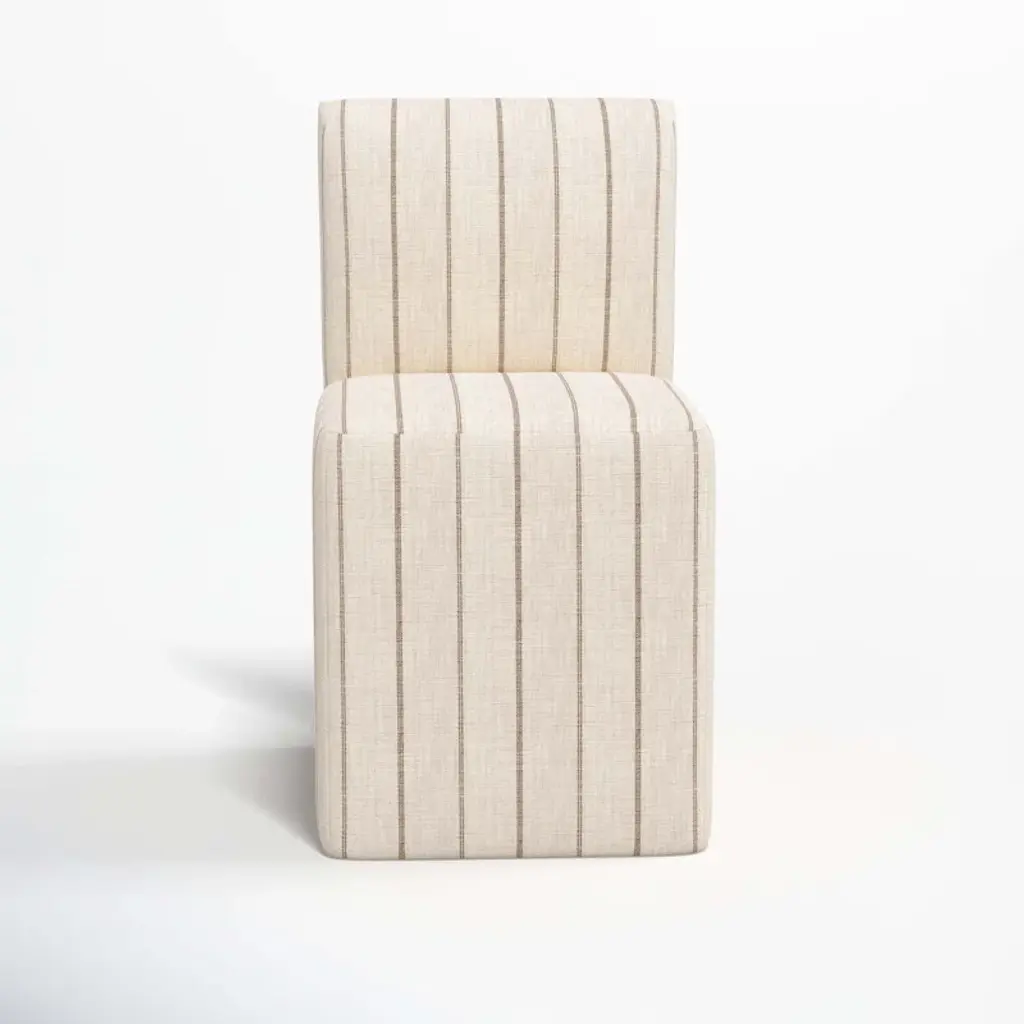 This beautifully handcrafted dining chair has a unique design that is sure to set your dining room table apart from all the rest. A play on a classic parsons shape, this chair features a contemporary cube structure with a low, comfortable back and generously padded seating. Made to order and manufactured in Illinois.