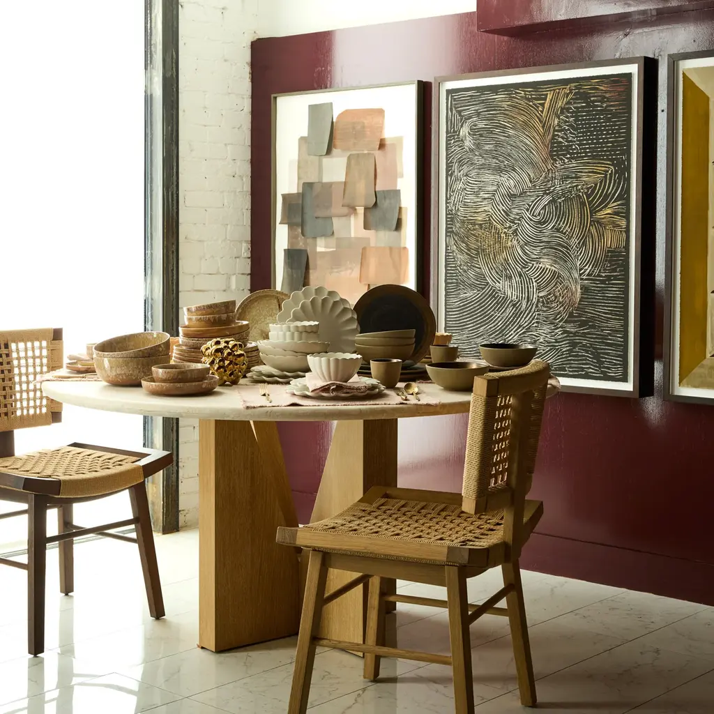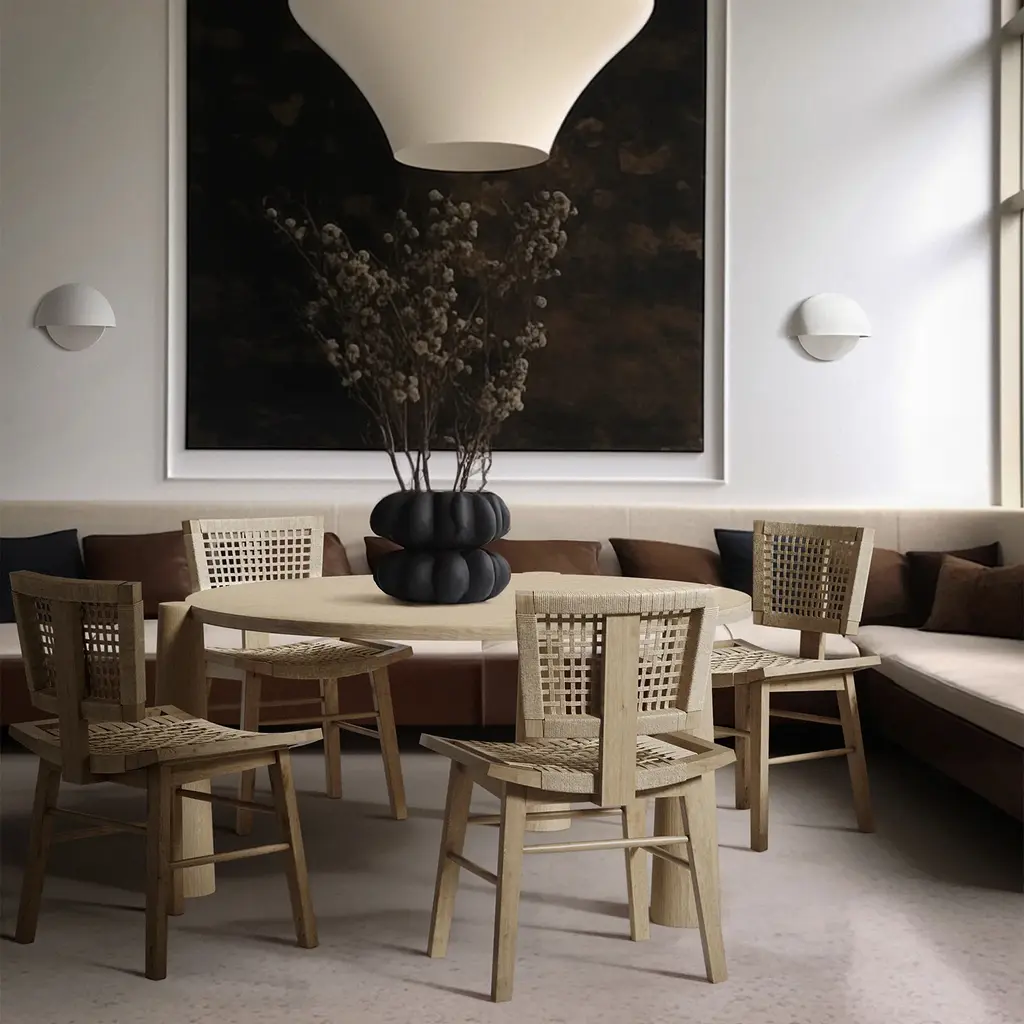 The Mercier chair is a solid Oak dining chair featuring a handwoven seat and back, perfectly contoured for optimal seating comfort. Its modern silhouette is reminiscent of the iconic designs by Pierre Jeanneret, blending classic inspiration with timeless style. Crafted from high-quality Oak, this chair offers both durability and aesthetic appeal. The handwoven details provide a unique texture, enhancing its sophisticated look. Ideal for those who appreciate fine craftsmanship, the Mercier chair is a standout piece for any dining room.