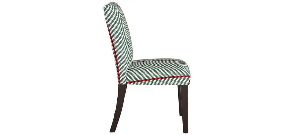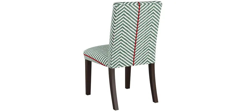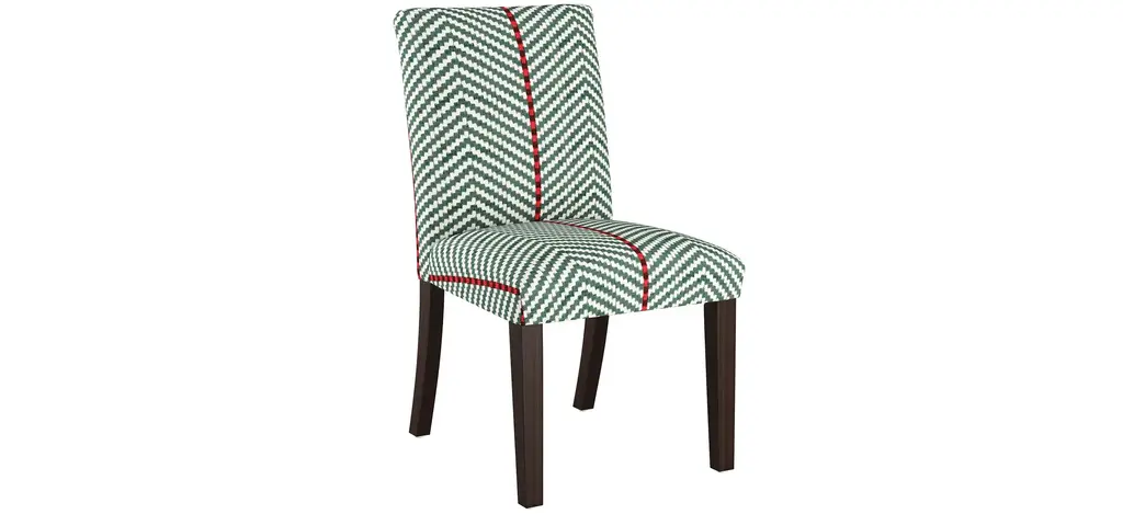 Secure the ideal Merry dining chair for your table when you select this versatile piece. With its hand upholstered geometric fabric, and superior construction, you can feel good about adding it to your overall dining designin multiples! Manufactured in Illinois and made to order, this square chair is graced with tasteful tapered wooden legs that add an air of sophistication. In addition, the armless construction makes it a sensible choice for dining areas both large and small.