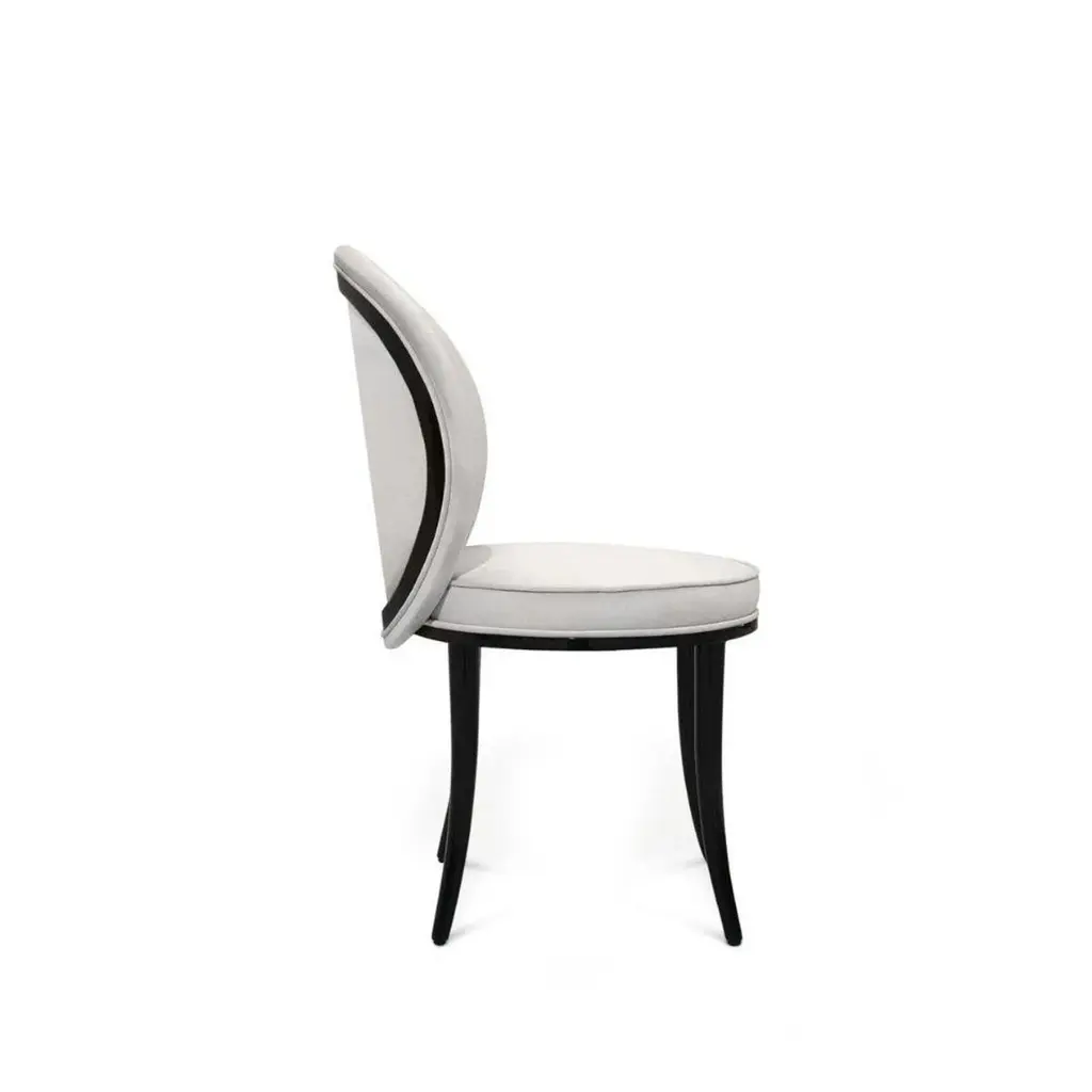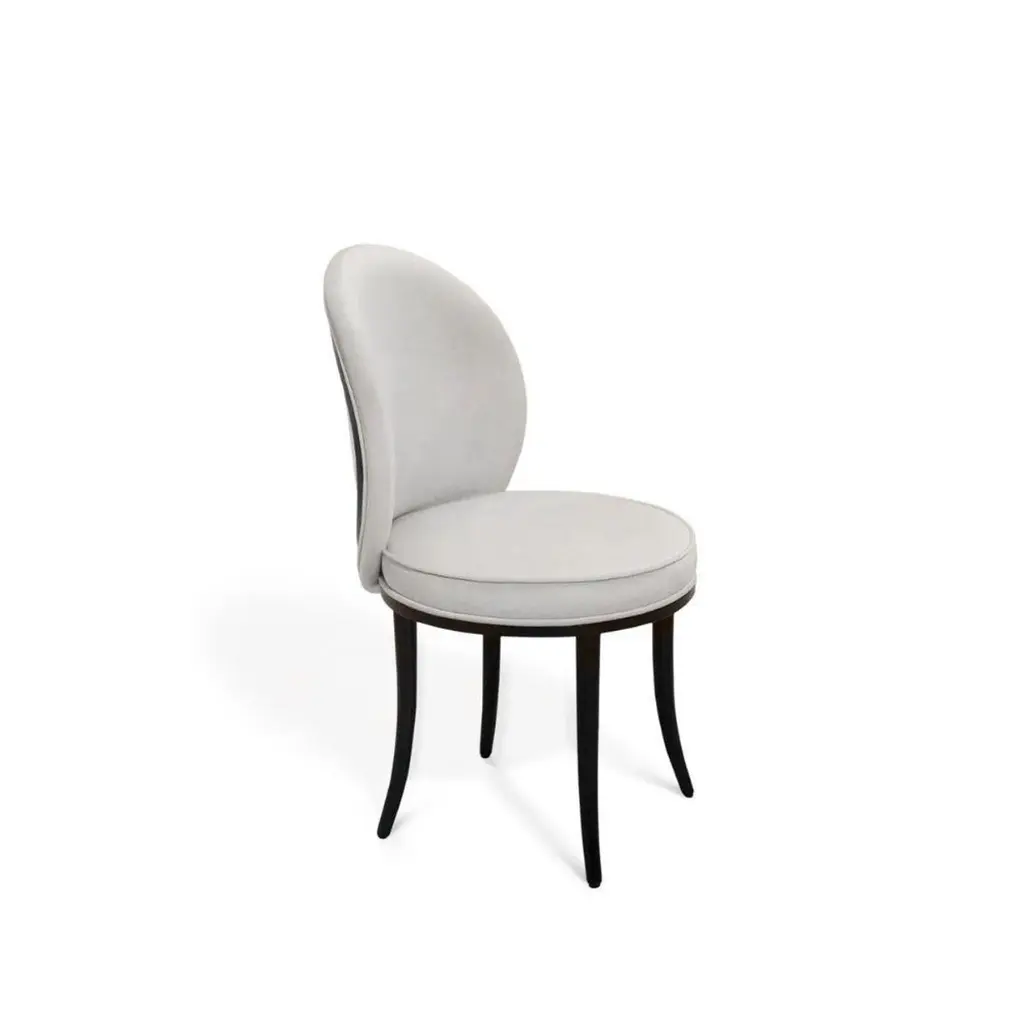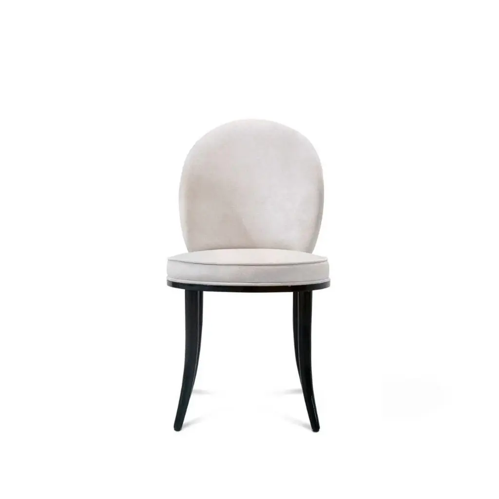 Entertain in haute style with the Merveille Dining Chairs. Stunning design turn the outside back of this graceful chair into a wondrous work of art!Materials & Finishes:Seat Upholstery: Radiance Velvet Cream from the KOKET Textiles collectionBack: Radiance Velvet Cream from the KOKET Textiles collectionLegs: Black Lacquer (High Gloss Finish)Clean & Care: Care for textiles by vacuuming or lightly brushing. Maintain textiles by keeping them away from direct sunlight. Rotate and flip cushions when vacuuming for even wear. The nap of high pile textiles such as velvets may become crushed or lose its original pile height. We recommend light steaming to lift the pile to its original height. The textile should also be brushed with a de-linting brush to maintain its pile. Water based or solvent cleaner may cause discoloration or staining. We recommend that stained or soiled textiles be professionally cleaned