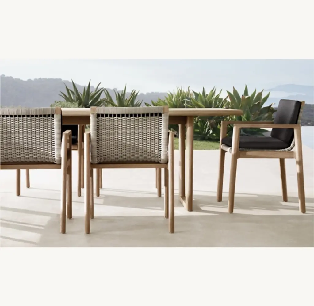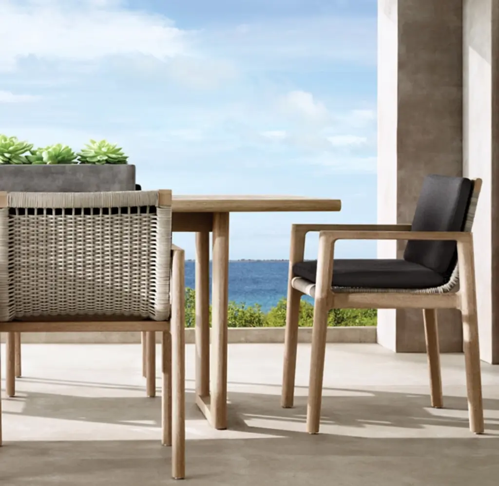 Informed by midcentury modern design yet of the moment, our sculptural collection by Mario Ruiz of Spain epitomizes the strength of simplicity. Mixing materials to elegant effect, an open and architectural teak frame pairs with handwoven all-weather wicker for the seat's cradling arc. The seamless juxtaposition of textures and the graceful play of curves and angles is understated yet compelling and complex. Frame is guaranteed for life.ALSO AVAILABLE IN ALUMINUMSHOP THE ENTIRE COLLECTION