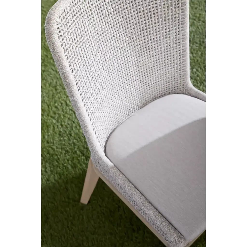 Mesh Outdoor Dining Chair, Set Of 2 Taupe & White Flat Rope, Gray Teak, Performance Pumice