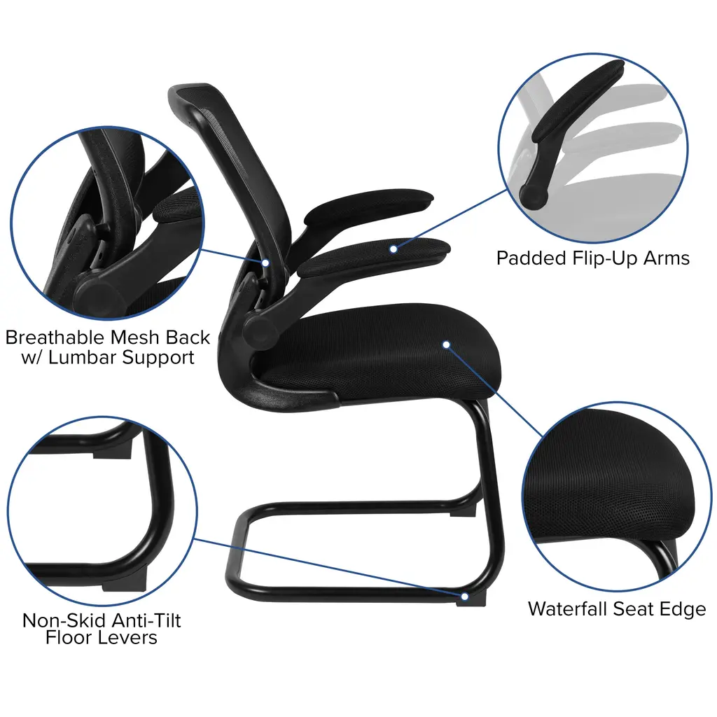 Mesh Sled Base Side Reception Chair With Flip-Up Arms