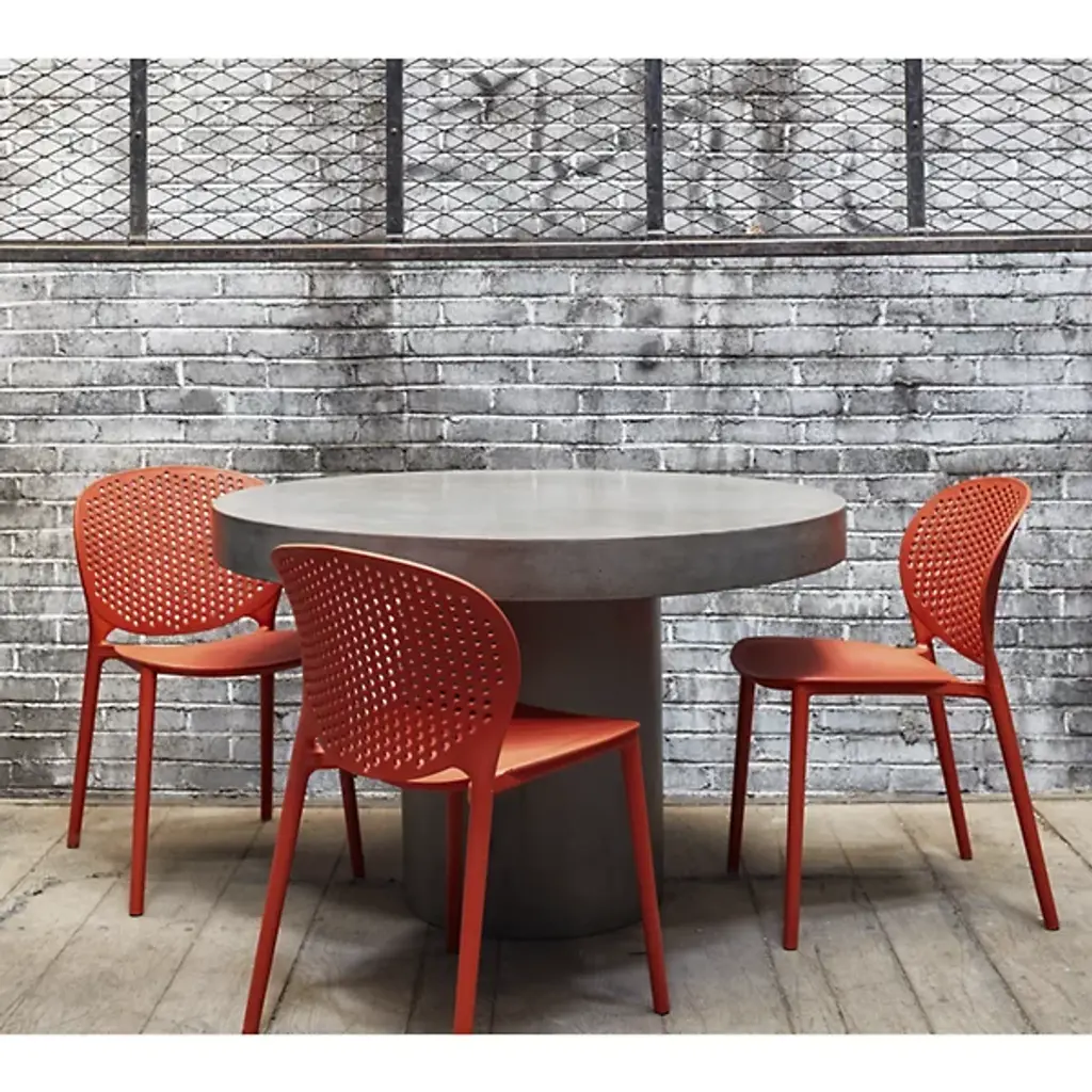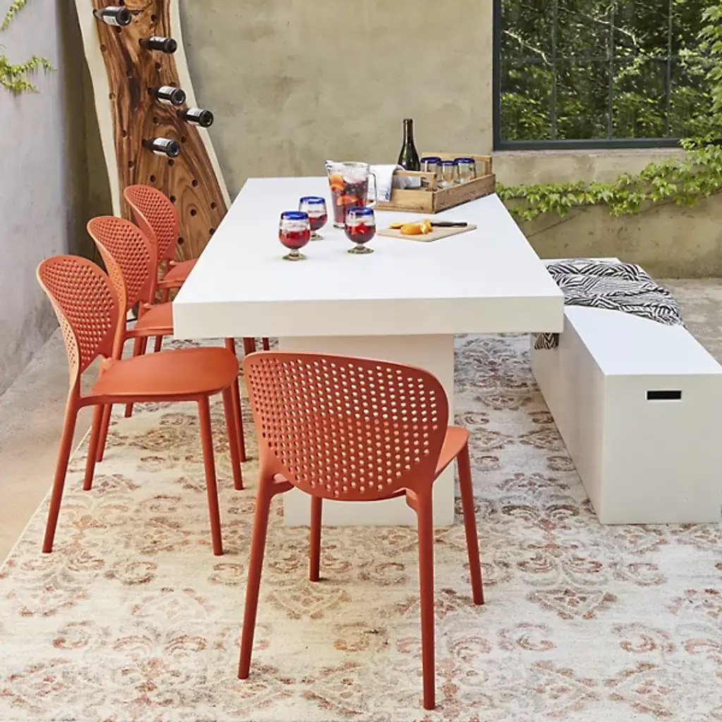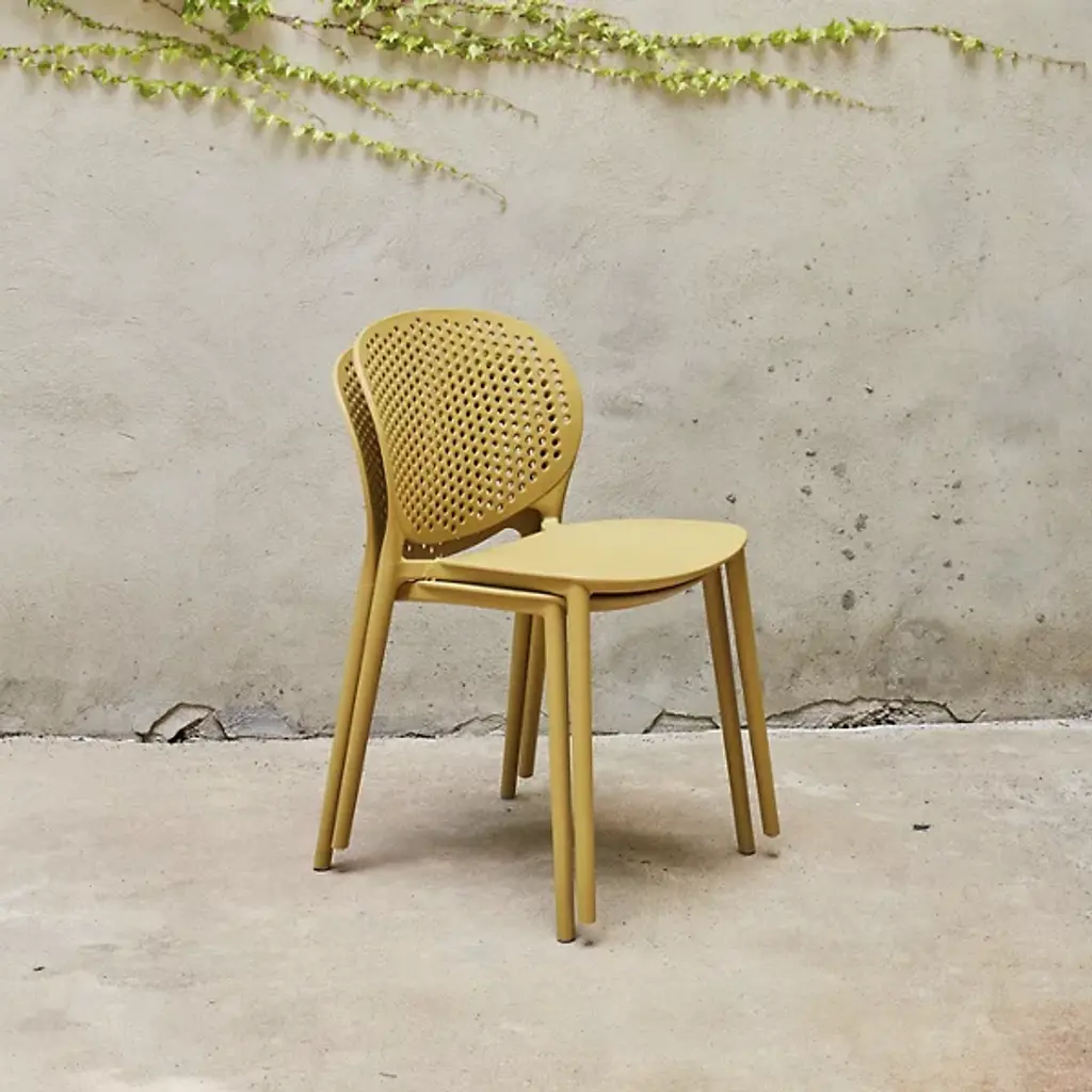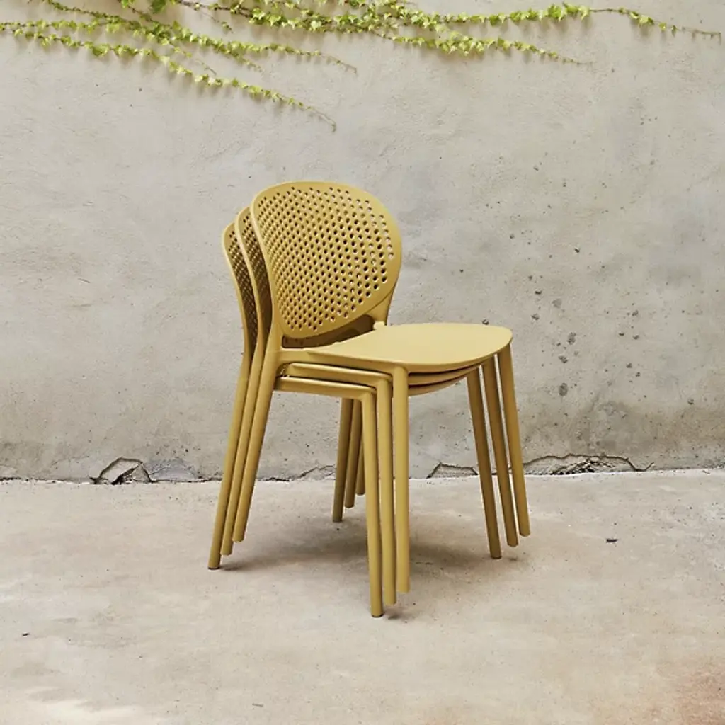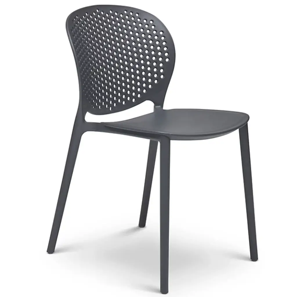 Sleek, sturdy and colorful. The Metro Bailey Side Chair - Set of 4 by Urbia will instantly enhance the form and functionality of a dining room or eat-in-kitchen. Injection-molded plastic construction ensures durability, while a perforated back provides a comfortably cool sitting experience. Stackable convenience also makes for easy storage, as well as portability for whenever extra chairs are needed.