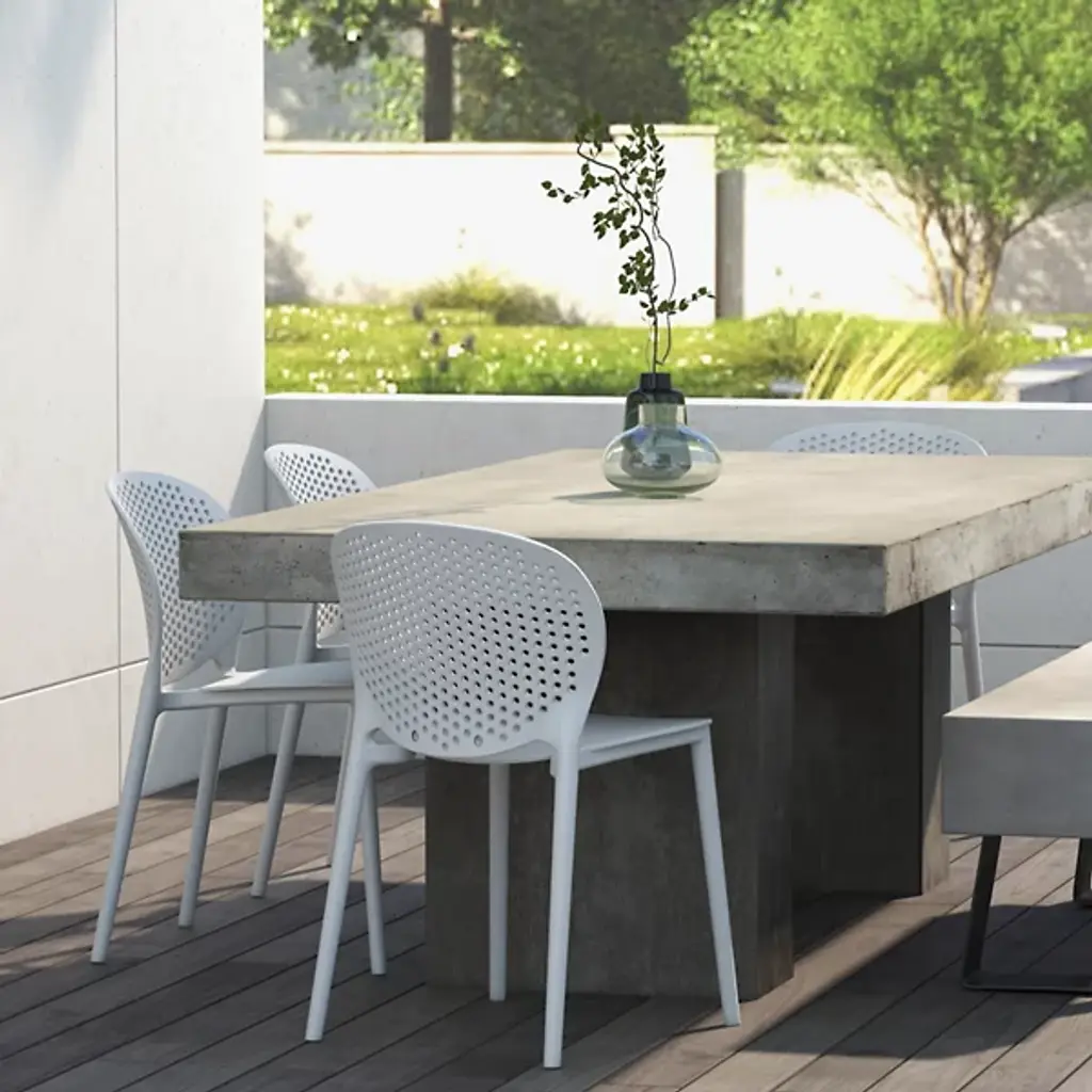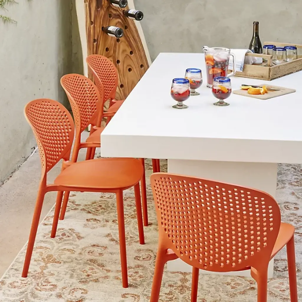 Sleek, sturdy and colorful. The Metro Bailey Side Chair - Set of 4 by Urbia will instantly enhance the form and functionality of a dining room or eat-in-kitchen. Injection-molded plastic construction ensures durability, while a perforated back provides a comfortably cool sitting experience. Stackable convenience also makes for easy storage, as well as portability for whenever extra chairs are needed.
